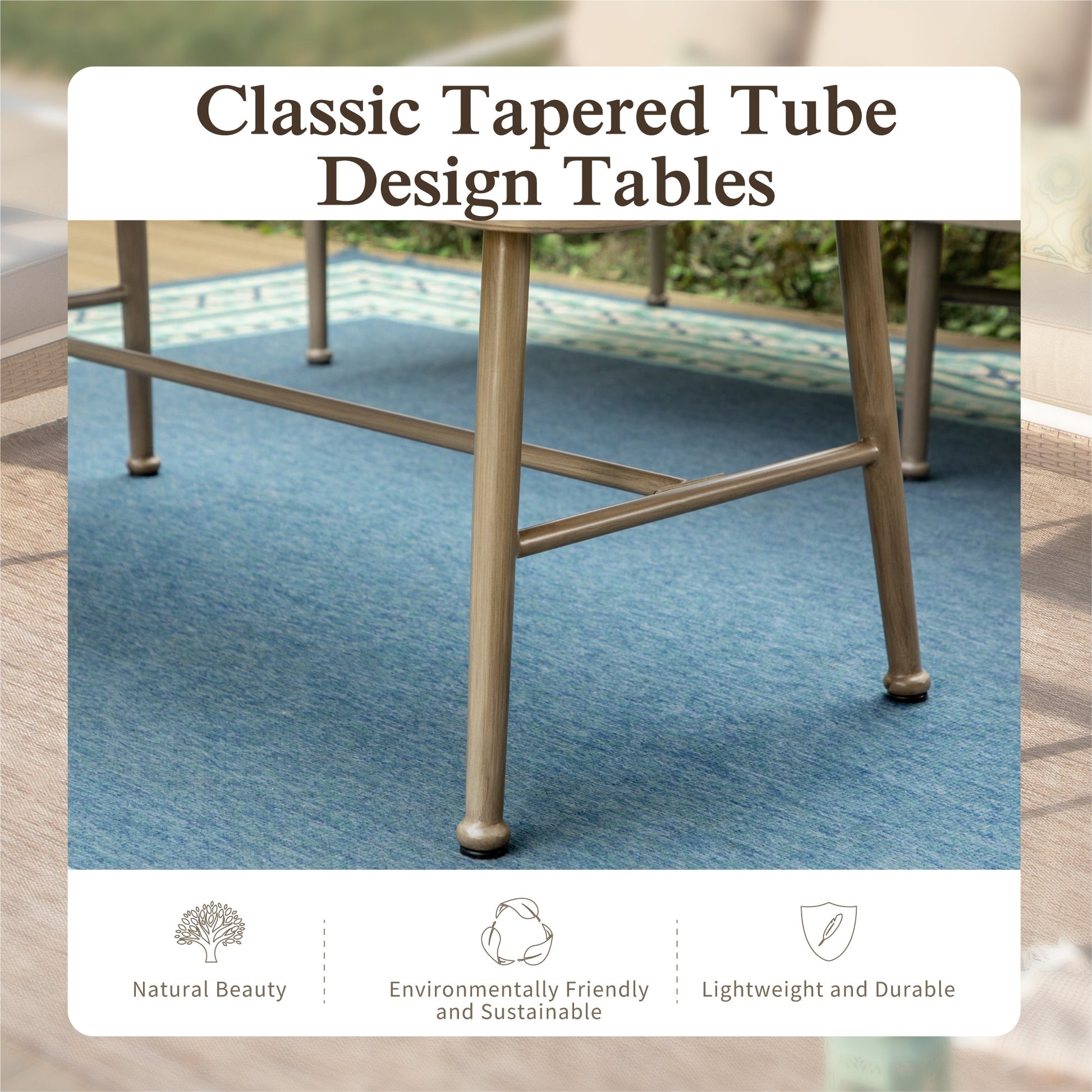 【Heavy-duty Design】Made of heavy-duty steel frame with E-coating & Powder-coating treatment, which provide the furniture to use for long time, in case of rust, scratches, rain, and UV harm easily. Wood-grain finish makes this furniture set elegant, making your home beautiful.