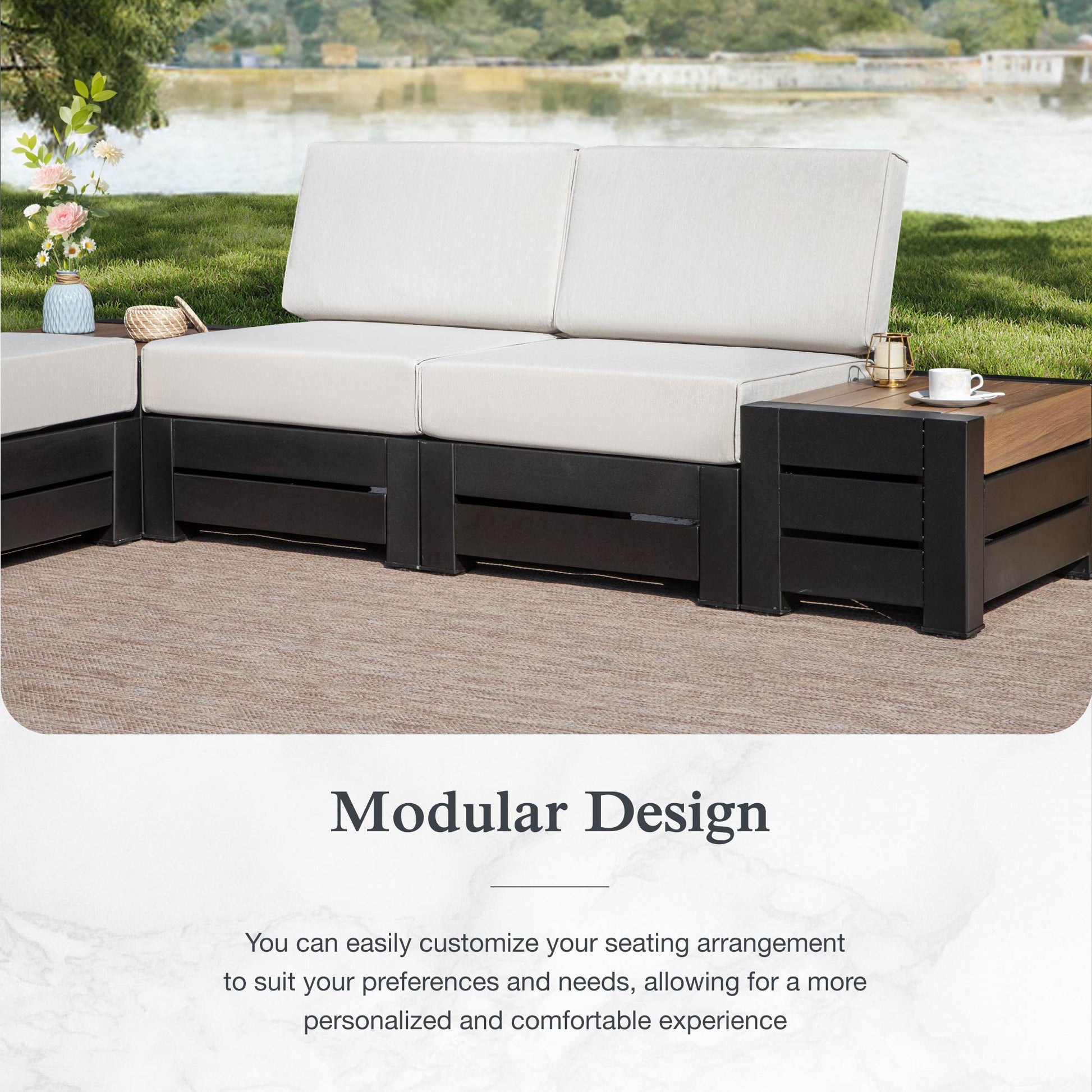 Sophia & William 4Pcs Patio Outdoor Furniture Set Sectional Armless Conversation Set with Woodgrain Side Table, Beige