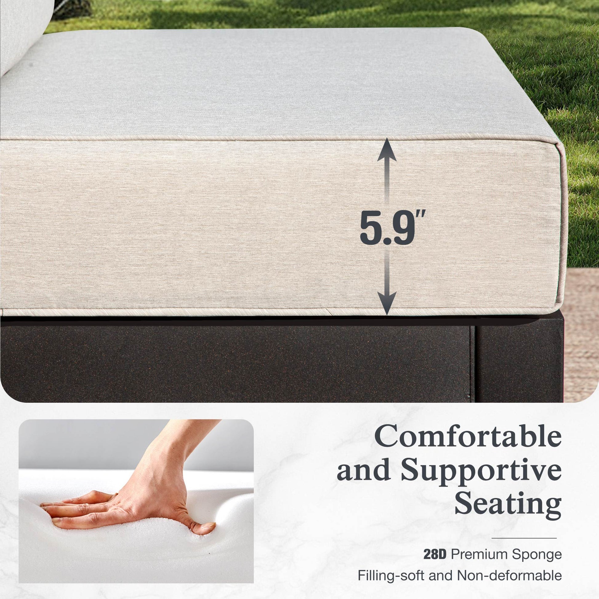 - 【Oversized & Comfortable Seat】: The 5.9" extra-thick seat and back cushions made with high-resilience 28D sponge ensure supreme comfort. The seat cushions and back cushions are equipped with Velcro fixing rings, preventing them from slipping and ensuring they remain securely in place, even in windy outdoor conditions. Experience maximum seating comfort and enjoyment, akin to sitting on clouds.