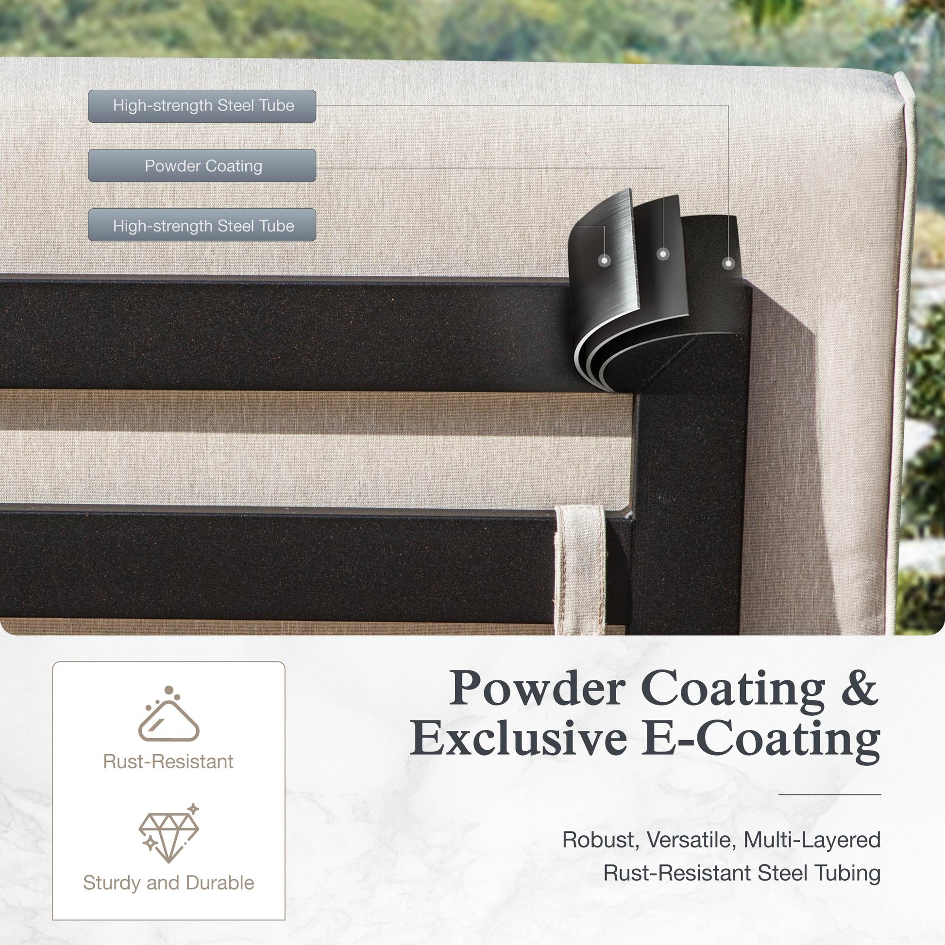 - 【All Weather & Heavy-duty Frame】: Made of heavy-duty steel frame with E-coating & Powder-coating treatment, which provide the furniture to use for long time, in case of rust, scratches, rain, and UV harm easily. It's easy to maintain or clean up. The single chair could support up to 350lbs.