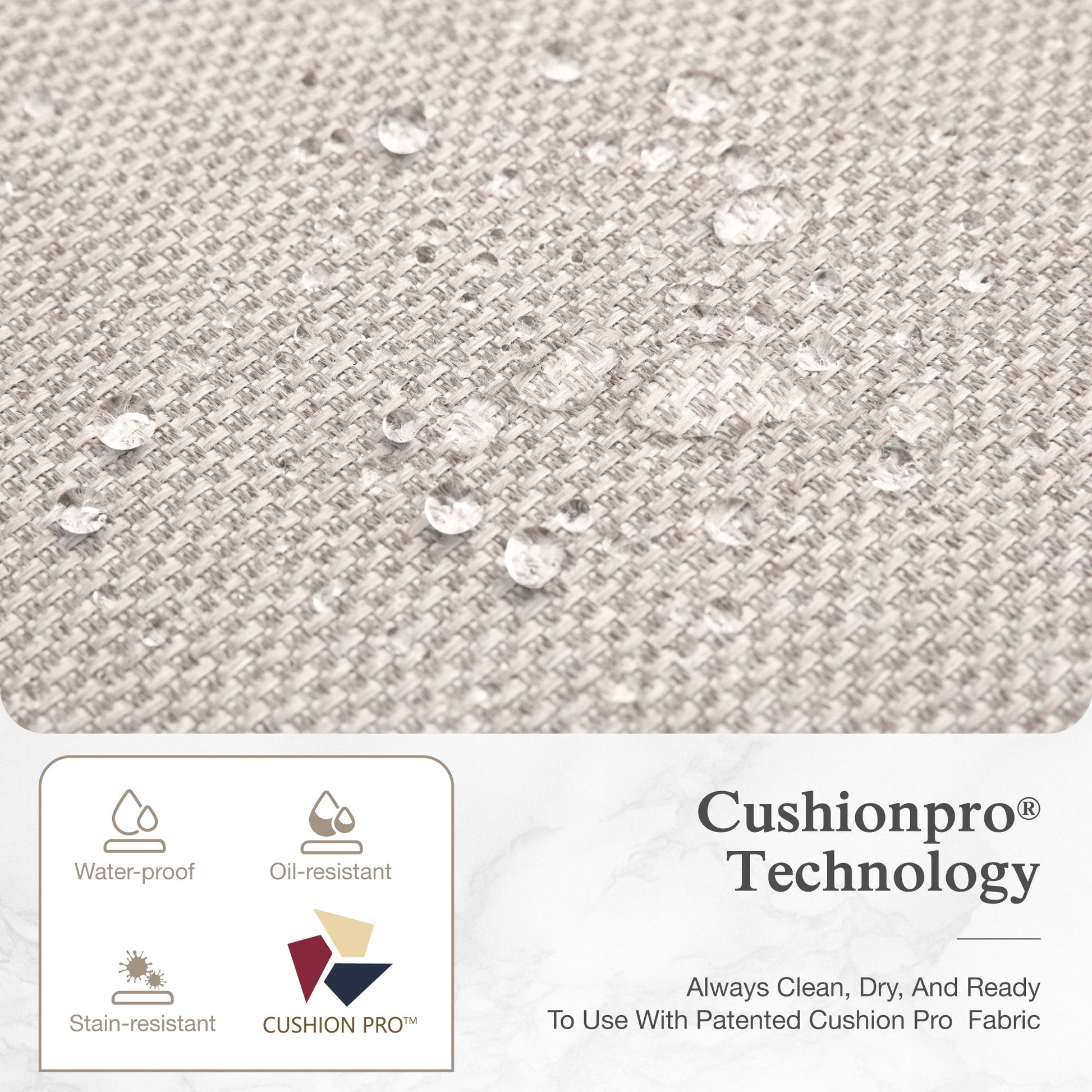 - 【CUSHION PRO Technology】: Our Patent Cushion Pro outdoor fabric boasts exceptional water-repellent, soil-release, and stain-resistant properties. When dirty, it's easily wiped down and suitable for all weather.