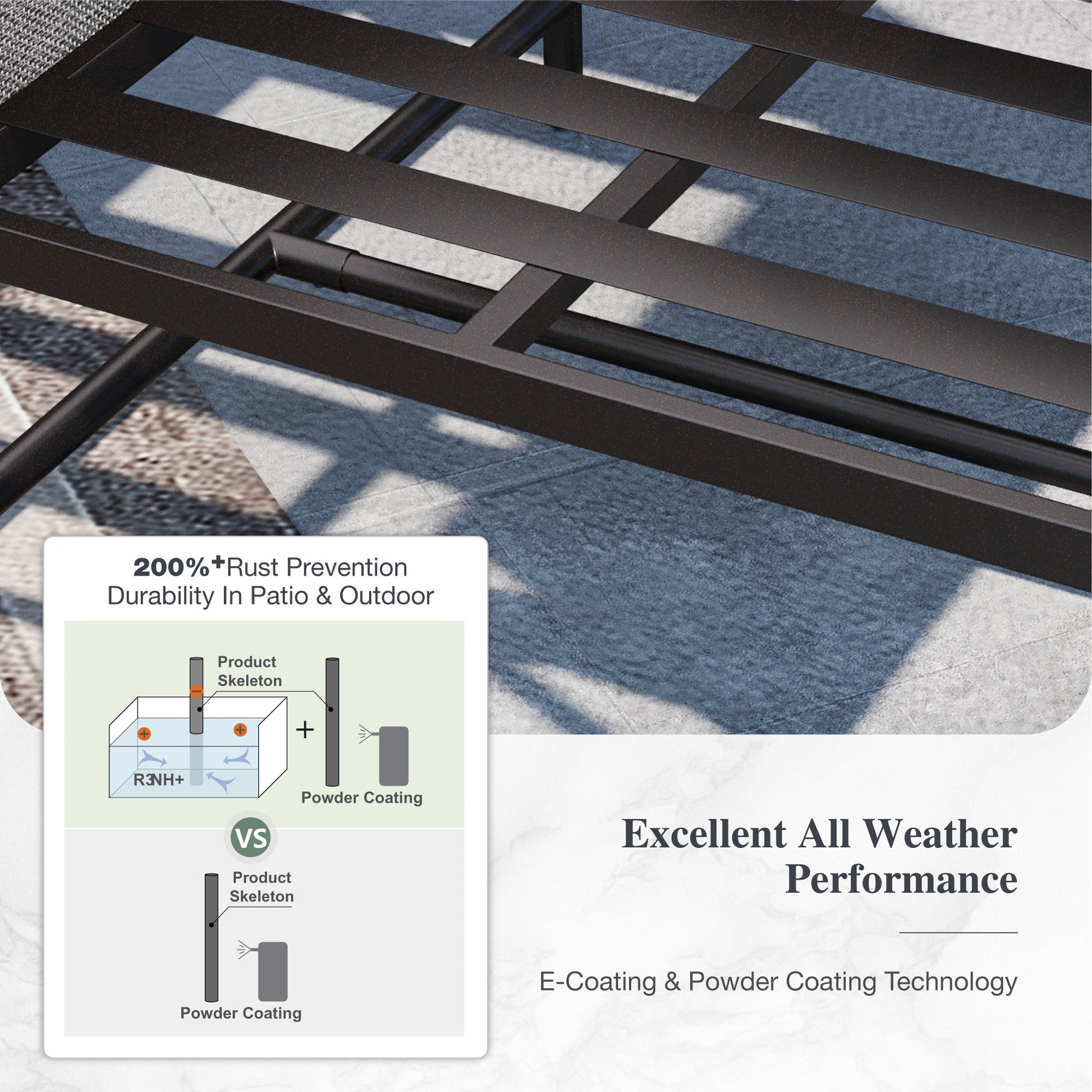 This wide furniture set is allowing for flexibility in arranging your furniture to suit various occasions. Whether you're hosting a gathering or simply relaxing with family, this patio conversation set is the perfect addition to your outdoor living experience. Don't miss out¡ªbring this exceptional furniture set home today for your family to enjoy!" ¡¾Cushioned Outdoor Furniture Set¡¿Including 1 x 3-seat sofa, 2 x cushioned fixed chair, 1 x metal coffee table. This patio conversation set provides optimal support for you and your family, it allows for extended hours of relaxation outdoors, perfect for any outdoor spaces, like balcony, lawn, swimming pool, garden, etc. ¡¾CUSHION PRO Technology¡¿:Our Patent Cushion Pro outdoor fabric boasts exceptional water-repellent, soil-release, and stain-resistant properties. Upgraded soft mesh textilene fabric filled, which is eco-friendly and won't easily tear or crack. When dirty, it's easily wiped down and suitable for all weather. ¡¾All Weather & Heavy-duty Frame¡¿:Made of heavy-duty steel frame with E-coating & Powder-coating treatment, which provide the furniture to use for long time, in case of rust, scratches, rain, and UV harm easily. It's easy to maintain or clean up. The single chair could support up to 350lbs and the leg sofa supports 900lbs. ¡¾Comfortable & Wide Seat¡¿:The chair features 4" thick seat and back cushions made with 28D sponge for exceptional comfort. The smooth armrests with fabric add an extra touch of style and enhance your seating experience, ensuring you feel cozy and relaxed. ¡¾Marble-Patterned Coffee Table¡¿:This 41.3"L x 20.5"W rectangular table not only offers versatility but also adds a visually appealing touch to your patio. Its unique marble-patterned metal surface, offering a clean and stylish look that enhances any modern outdoor furniture set. ¡¾Timely Customer Service¡¿:Due to the large volume of the item, this set will be shipped in different packages, delivery times may vary per box. If you encounter any issues, such as missing parts or damage, please do not hesitate to contact us for support.