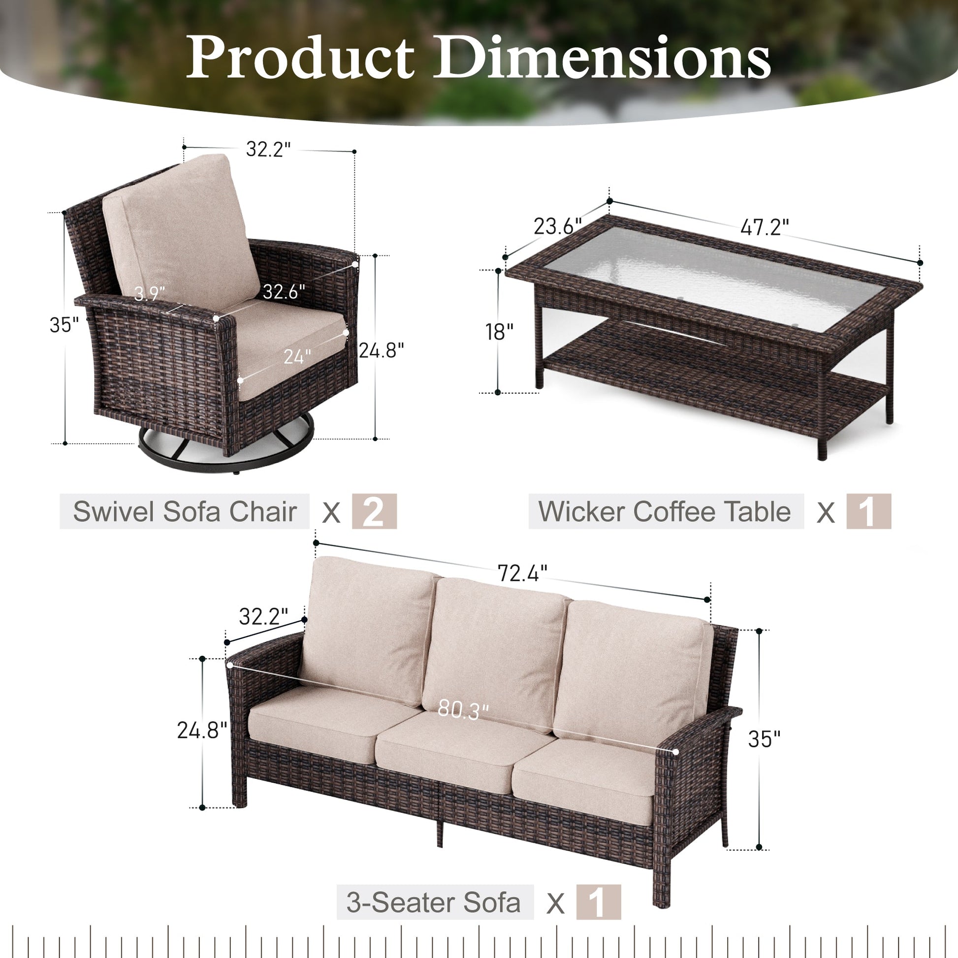 Sophia & William 4 Pieces Patio Furniture Set with Swivel Chairs 5-Seat Wicker Outdoor Conversation Set with Thickened Cushions