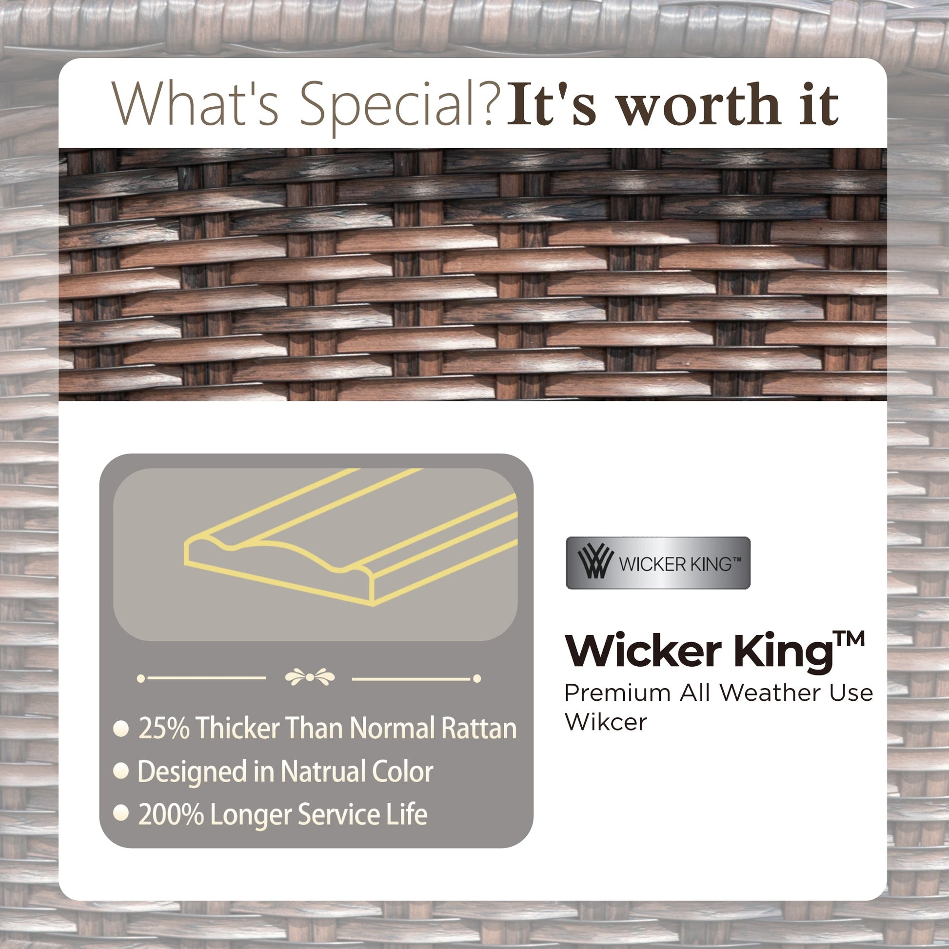 Upgrade your outdoor living with Sophia & William¡¯s durable and stylish patio furniture set, perfect for your porch, deck, or balcony. This 4-piece patio set features a comfortable 3-seat sofa, two swivel chairs, and a stylish table, all designed for comfort and longevity. The heavy-duty steel frame and weather-resistant wicker rattan ensure durability, making it an ideal choice for any outdoor setting. The cushions are removable and easy to clean, while the set is water repellent, soil release, and stain-resistant, perfect for all-weather use. Enjoy the perfect balance of relaxation and support with our slightly reclined back sofa, and add a fun twist to your outdoor seating with the swivel chairs. Experience luxury and durability with our outdoor wicker sofa set, designed to enhance your outdoor living space for years to come. Elevate your gatherings with our outdoor conversation set, perfect for entertaining or relaxing with friends and family.