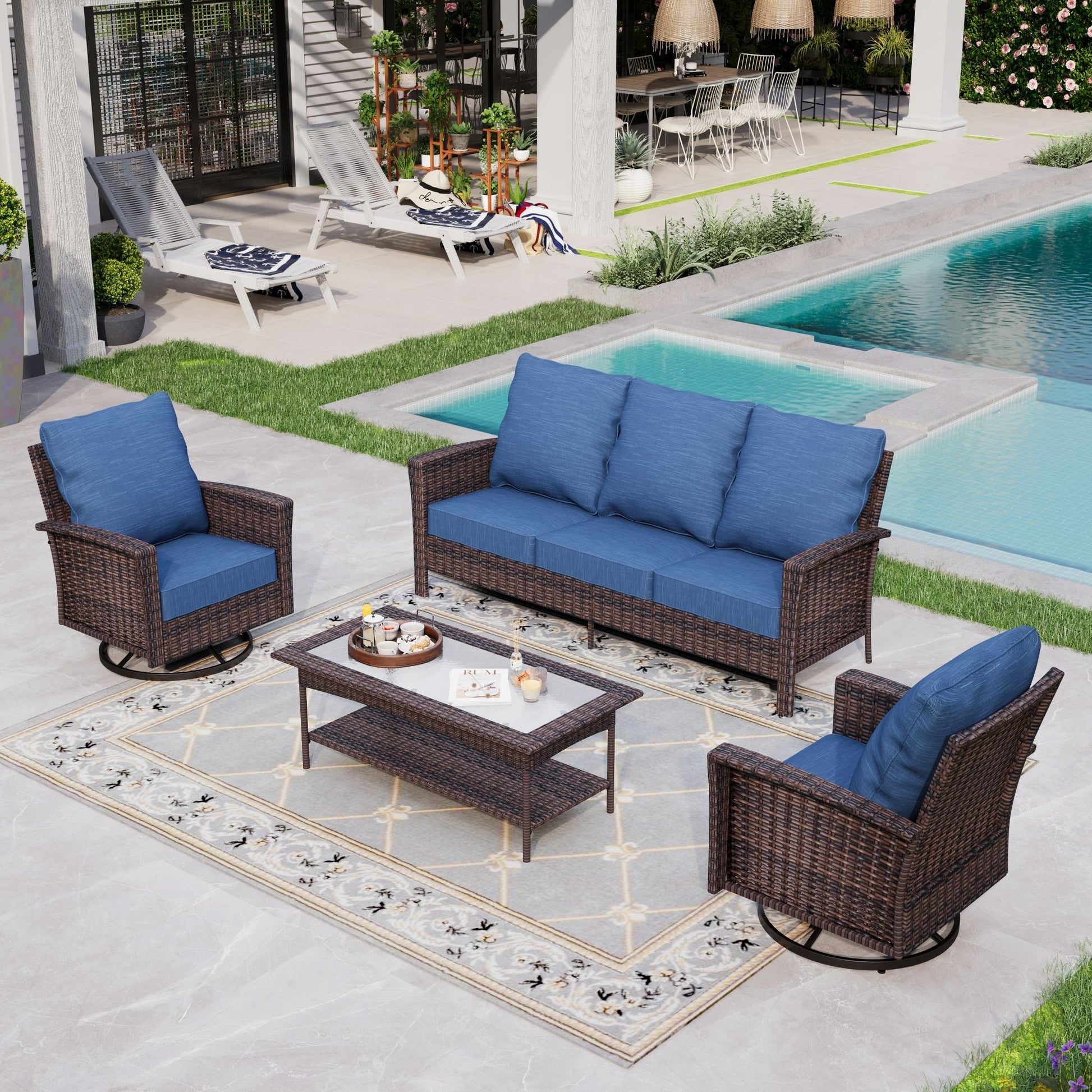 Sophia & William 4 Pieces Patio Furniture Set with Swivel Chairs 5-Seat Wicker Outdoor Conversation Set with Thickened Cushions
