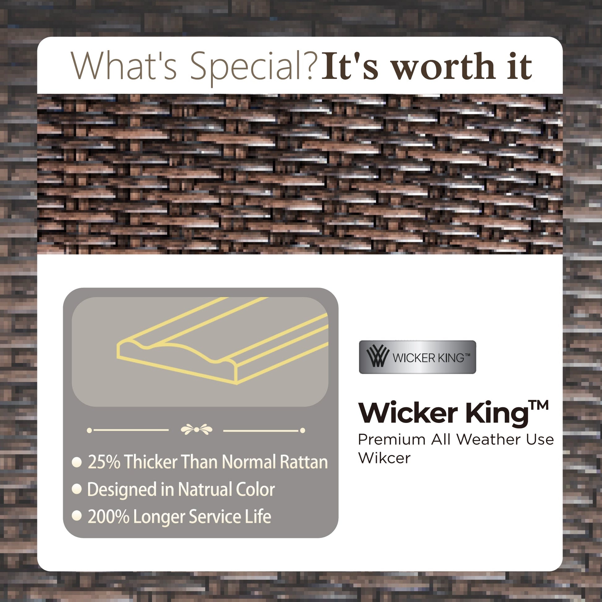 Upgrade your outdoor living with Sophia & William durable and stylish Patio Furniture Set. Featuring a 3-seat sofa, two swivel chairs, 2 ottomans, this 5 pieces patio set is designed for comfort and longevity. The heavy-duty steel frame and weather-resistant wicker rattan ensure durability. The cushions are removable and easy to clean, and the set is water repellent, soil release, and stain resistant, making it ideal for all-weather use. Enjoy the perfect balance of relaxation and support with our slightly reclined back sofa, while the swivel chairs add a fun twist to your outdoor seating. Experience luxury and durability with our Outdoor Sofa Set, designed to enhance your outdoor living space for years to come. Experience luxury and durability with our Ourdoor Conversation Set.
