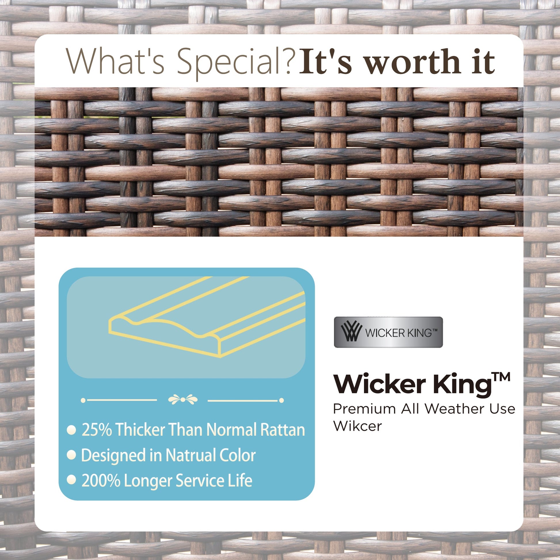 Upgrade your outdoor living with Sophia & William durable and stylish Patio Furniture Set. Featuring a 3-seat sofa, two swivel chairs, 2 ottomans, this 5 pieces patio set is designed for comfort and longevity. The heavy-duty steel frame and weather-resistant wicker rattan ensure durability. The cushions are removable and easy to clean, and the set is water repellent, soil release, and stain resistant, making it ideal for all-weather use. Enjoy the perfect balance of relaxation and support with our slightly reclined back sofa, while the swivel chairs add a fun twist to your outdoor seating. Experience luxury and durability with our Outdoor Sofa Set, designed to enhance your outdoor living space for years to come. Experience luxury and durability with our Ourdoor Conversation Set.