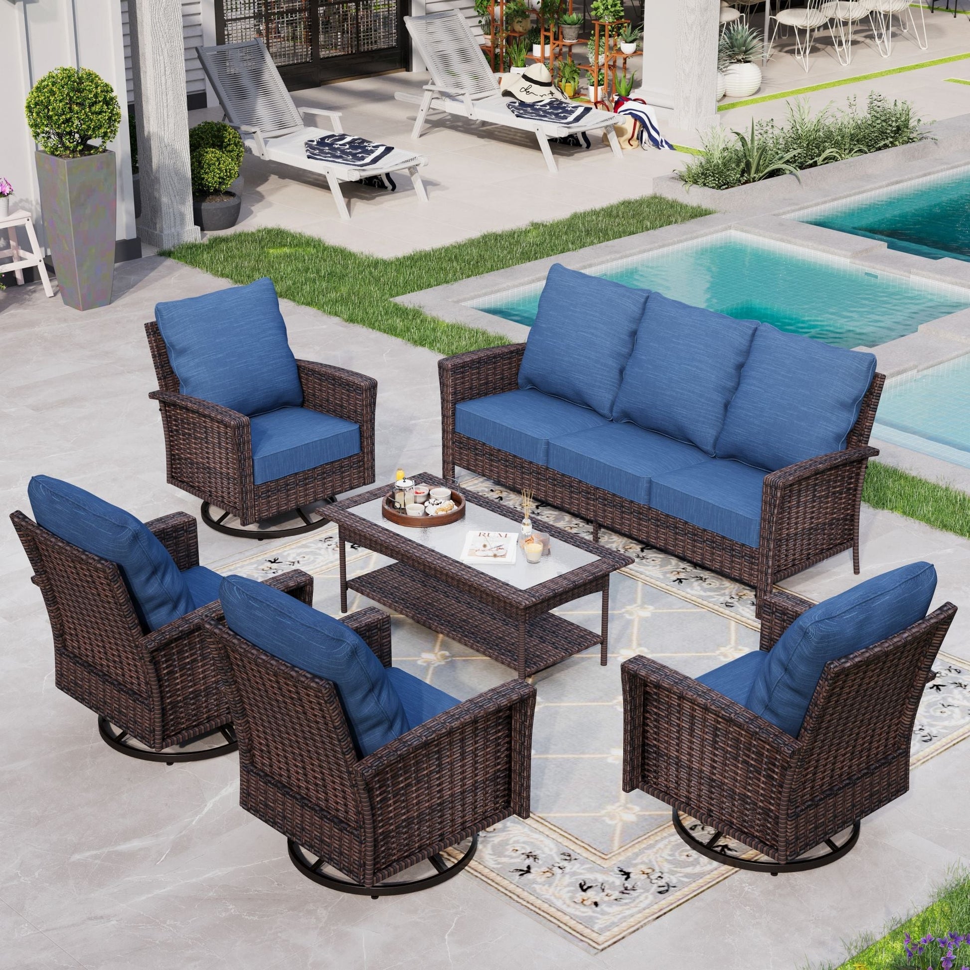 Sophia & William 6 Pieces Patio Furniture Set with Swivel Chairs 7-Seat Wicker Outdoor Conversation Set with Thickened Cushions