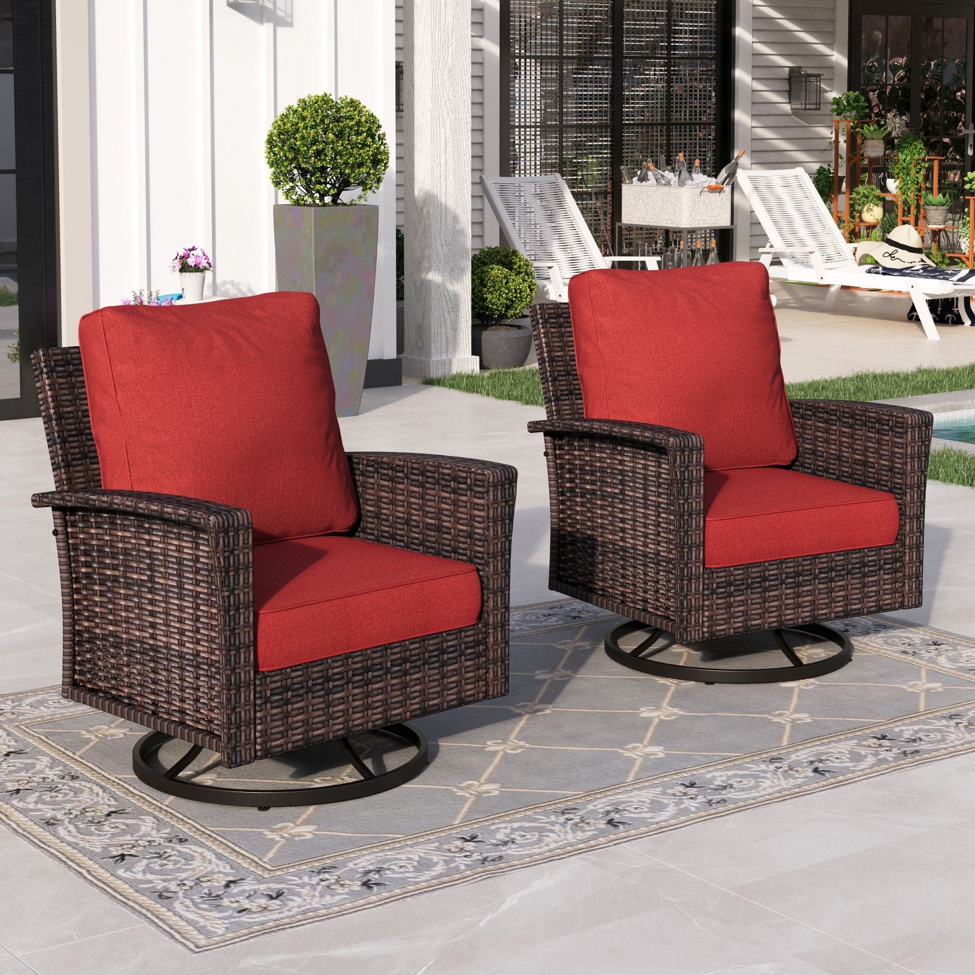 Sophia & William Outdoor Patio Wicker Swivel Chairs Set of 2 with 5.5" Thick Cushions, Red