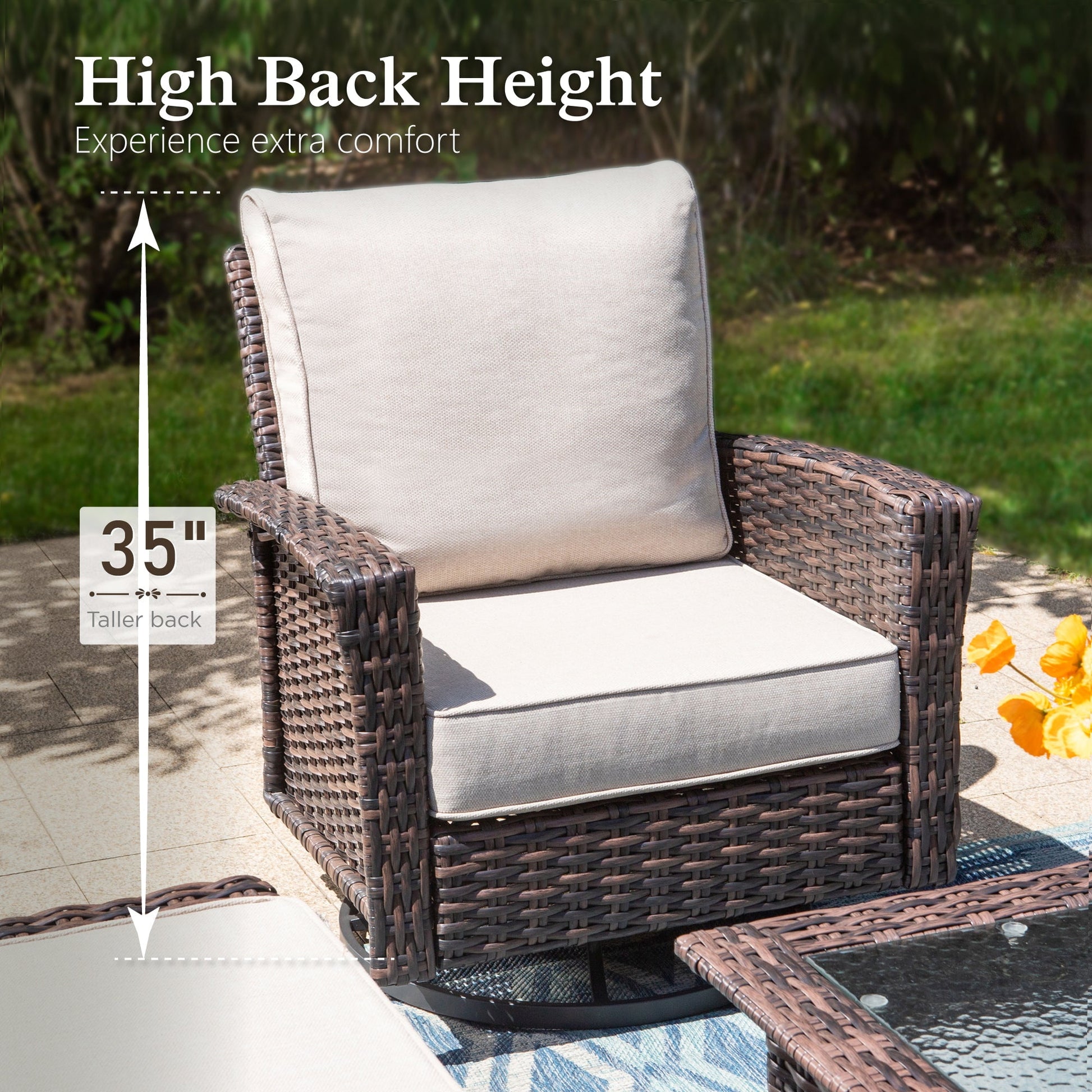 Upgrade your outdoor living with the 3-Piece Sophia & William Outdoor Bistro Set. Built with a heavy-duty steel frame and weather-resistant wicker rattan, this set is designed for durability. The removable cushions are easy to clean and provide all-weather comfort. The slightly reclined sofa and fun swivel chairs offer a perfect balance of relaxation and style. The set also includes a chic outdoor side table made from PE wicker and a sturdy iron frame. Its spacious faux woodgrain tabletop is great for snacks and drinks, while the lower shelf provides convenient storage for books and magazines. Experience luxury and functionality with this Outdoor Conversation Set, perfect for enhancing your outdoor space.