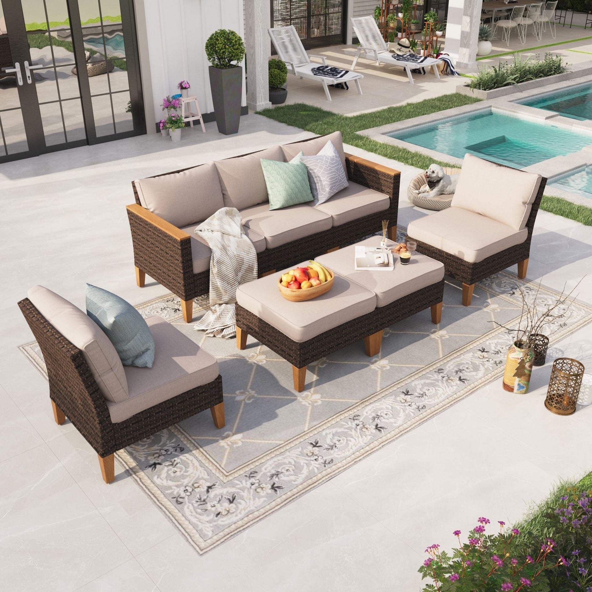 Sophia & William 7 Piece Outdoor Wicker Patio Conversation Sofa Set Outdoor Sectionals
