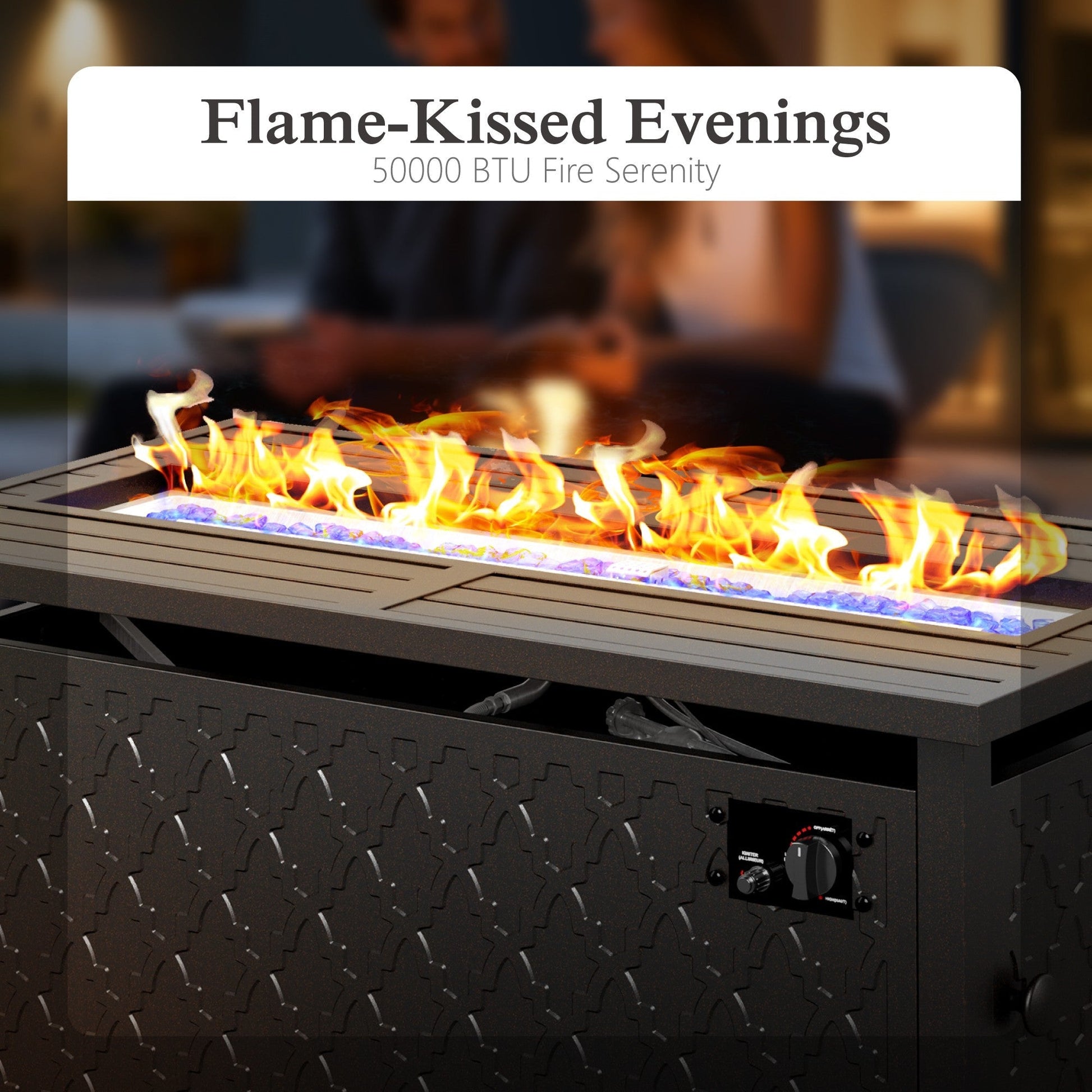 ¡¾50,000 BTU Fire Pit Table¡¿The heat outpu of our Fire Pit Table is 50,000 BTU. When it is not heated,it can be easily converted into a covered outdoor dining table, coffee table or lounge bar. Automatic ignition with pulse switch to ensure successful rapid ignition every time.