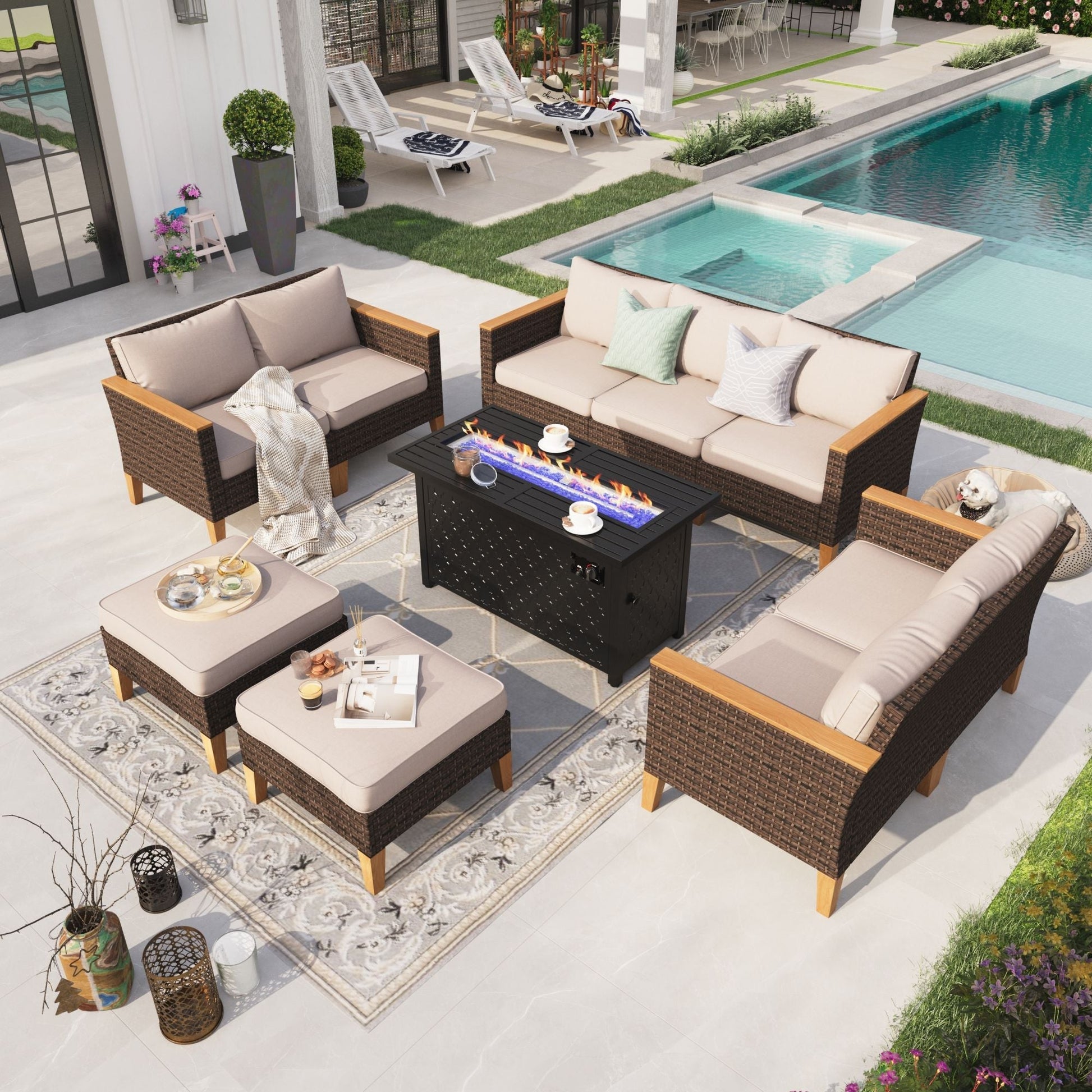 Sophia & William 10 Piece Outdoor Wicker Patio Conversation Sofa Set with Fire Pit Table