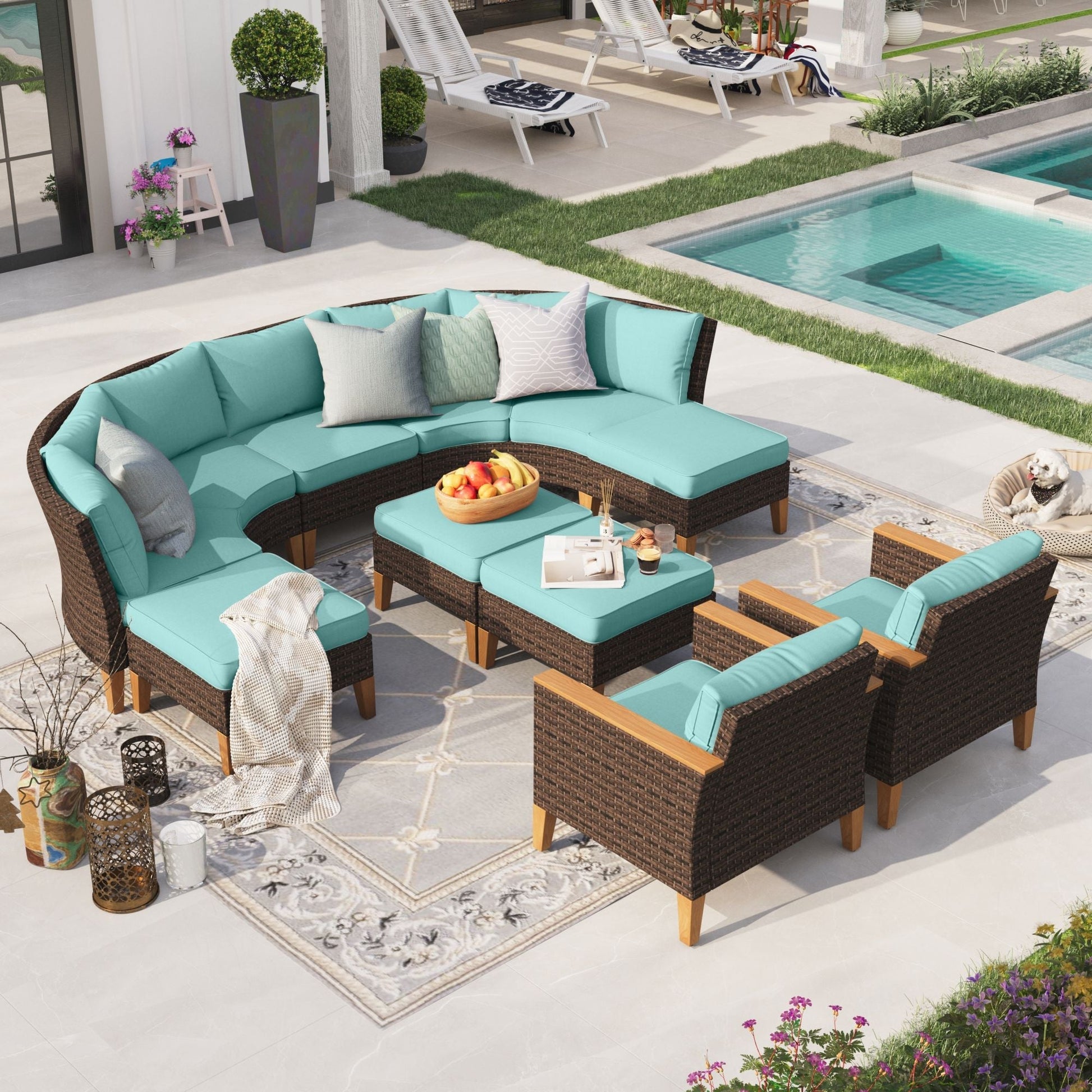 Sophia & William 10 Piece Outdoor Wicker Patio Conversation Sofa Set Outdoor Sectionals, Turquoise