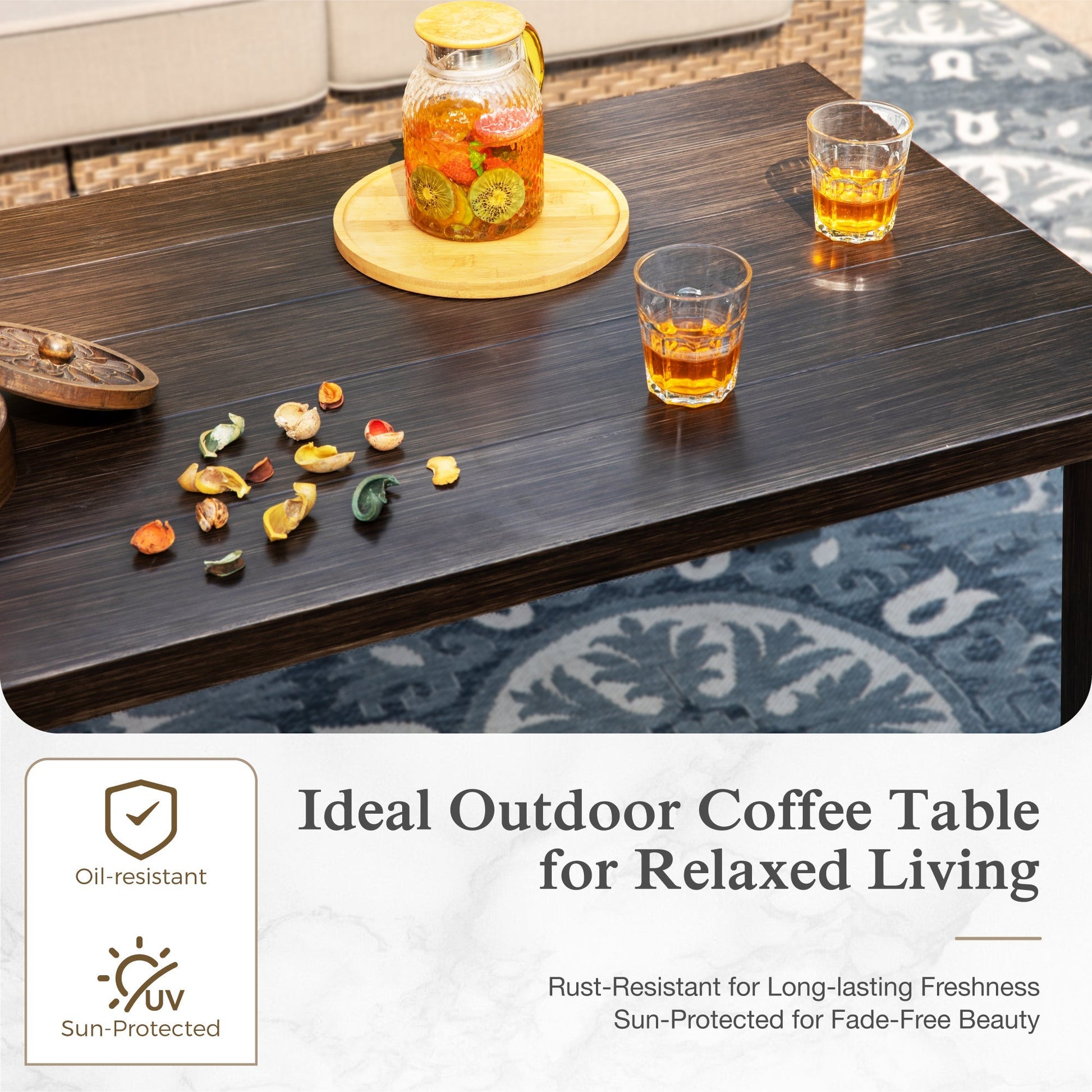 Upgrade your outdoor space with this stylish 4-piece patio conversation set, featuring a coffee table, a spacious 3-seat sofa, and two swivel glider chairs. The outdoor furniture set is crafted from high-quality, hand-woven, weather-resistant PE rattan, ensuring durability against the elements. Designed with wide 4.92" armrests for added comfort and convenience, the set perfectly accommodates your belongings while you relax. Each seat is designed to support up to 350 lbs and includes cushions that are 5.5" thick for exceptional comfort. The waterproof and stain-resistant fabric allows for easy care, with removable covers for convenience.
