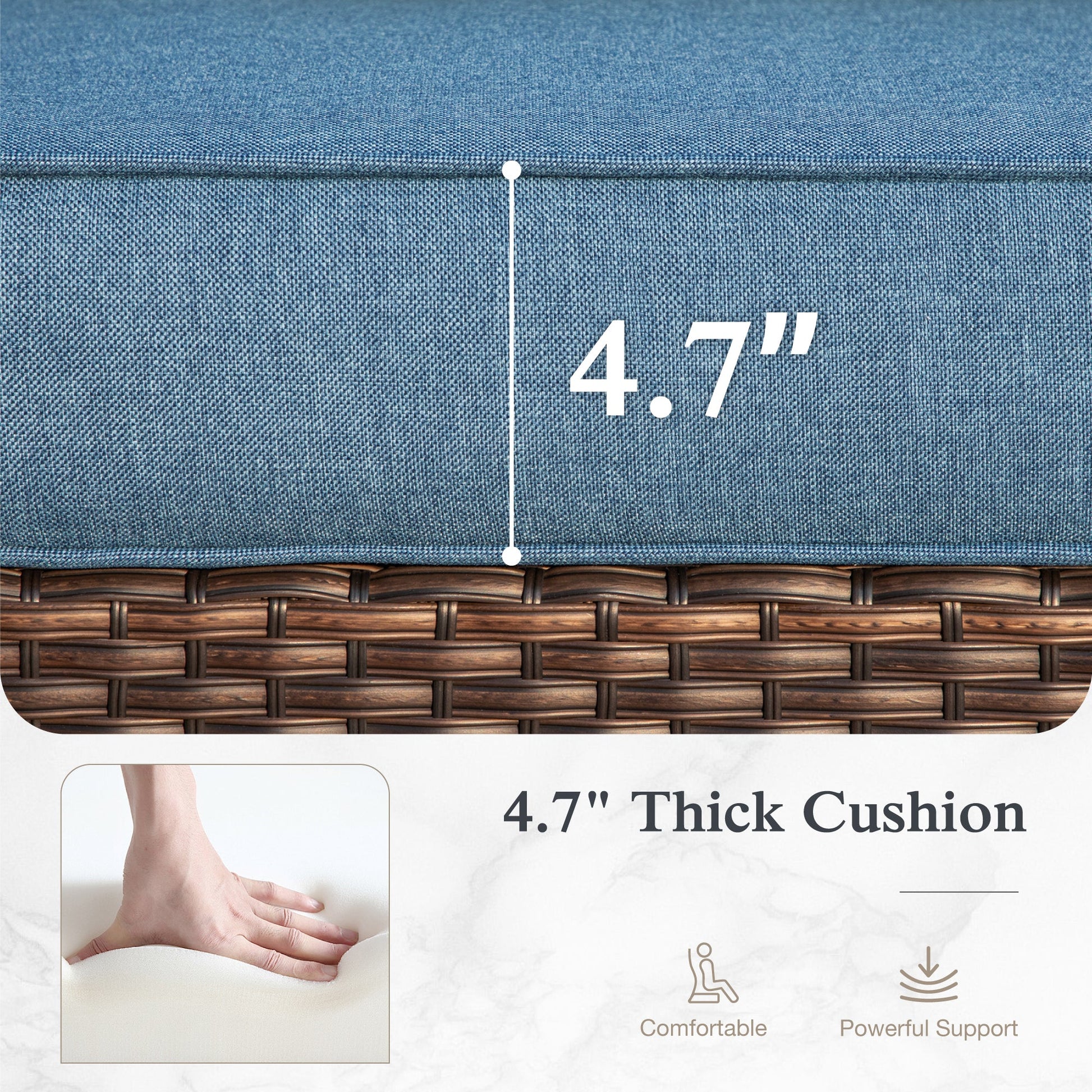 Transform your outdoor space with the Sophia & William patio conversation set! This versatile set allows for multiple configurations, adapting perfectly to your space. With a comfortable back height of 29.13 inches and plush 4.7-inch thick cushions, you¡¯ll enjoy lounging like never before. The elegant curved design adds a touch of style, while the double-layer wicker ensures durability and beauty from every angle. Its two coffee tables offer convenience, whether combined or separately. Safety is prioritized with rounded legs and screw caps of the same color can cover the screws for a more beautiful look. Elevate your patio experience today!