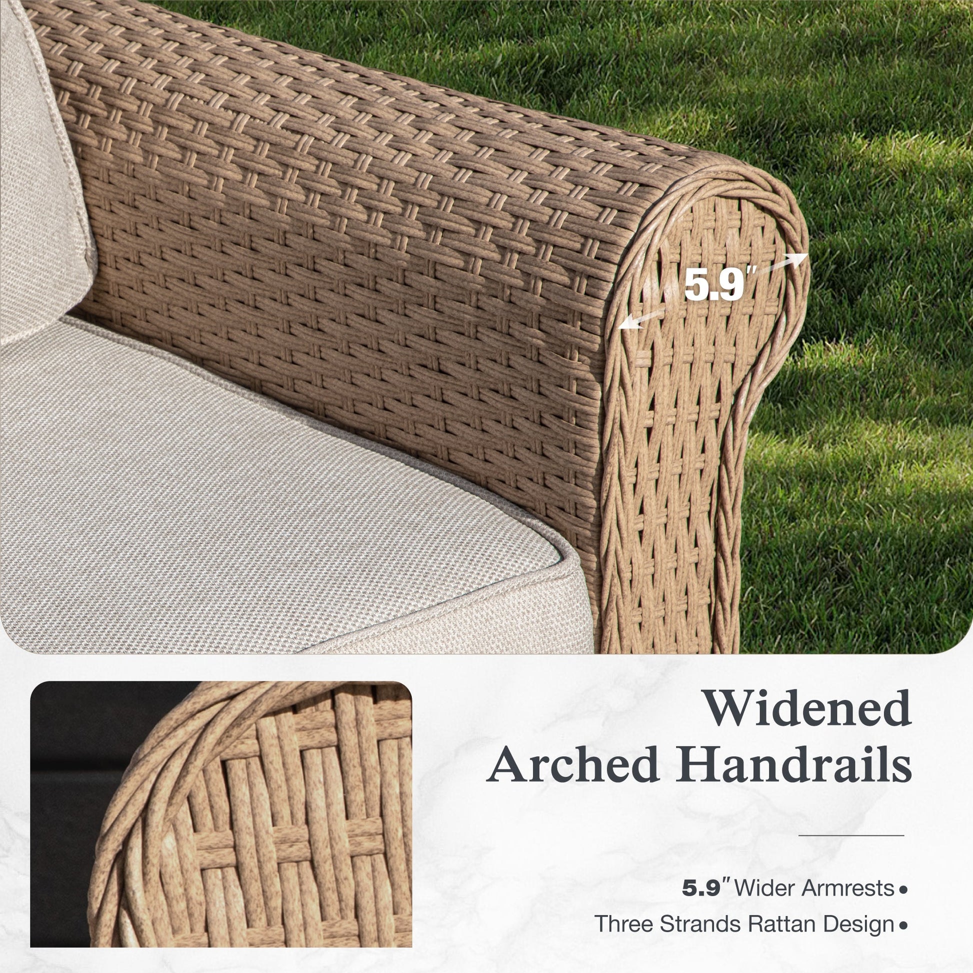 Sophia & William 8 Pieces Wicker Patio Furniture Set 7-Seat Outdoor Cushioned Conversation Set with Fire Pit Table, Yellow & Beige
