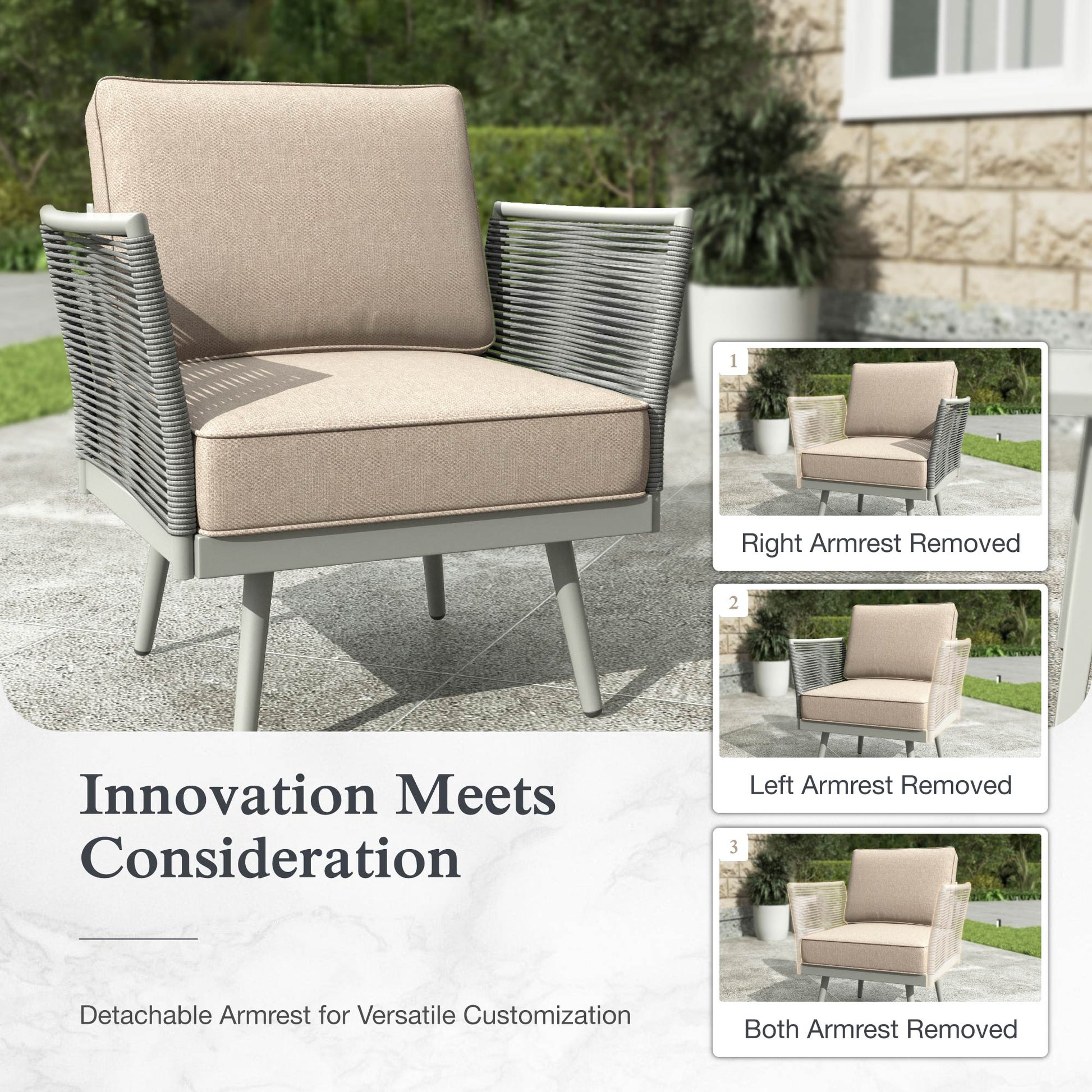 Elevate your outdoor space with the stylish and functional 4 Pieces Outdoor Patio Furniture Set from Sophia & William. This gorgeous beige set features weather-resistant rope-like rattan, making it perfect for any patio, balcony, or backyard. Each piece is designed with durable galvanized metal frames, ensuring exceptional rust resistance. The cushions are not only comfortable but also water, oil, and stain-resistant, keeping your relaxation time worry-free. With removable covers, they are easy to clean and maintain. The thick 5.51'' high-density foam seat cushions provide superior support and comfort, while the plush PP cotton-filled back cushions ensure you have a cozy spot to unwind. Each seat supports up to 350 pounds, and the coffee table can hold up to 66.14 pounds. Transform your outdoor area with this elegant furniture set that combines durability and style for lasting enjoyment.