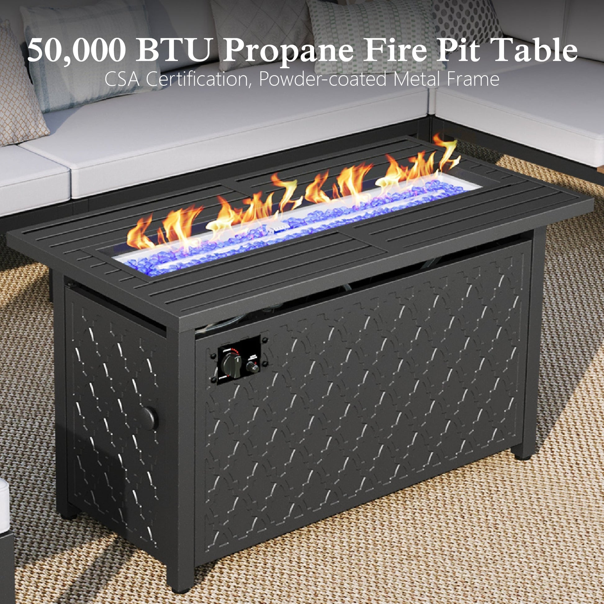 Sophia & William 6 Pieces Outdoor Patio Furniture Conversatio Sofa Set with Fire Pit Table, Light Grey Cushion