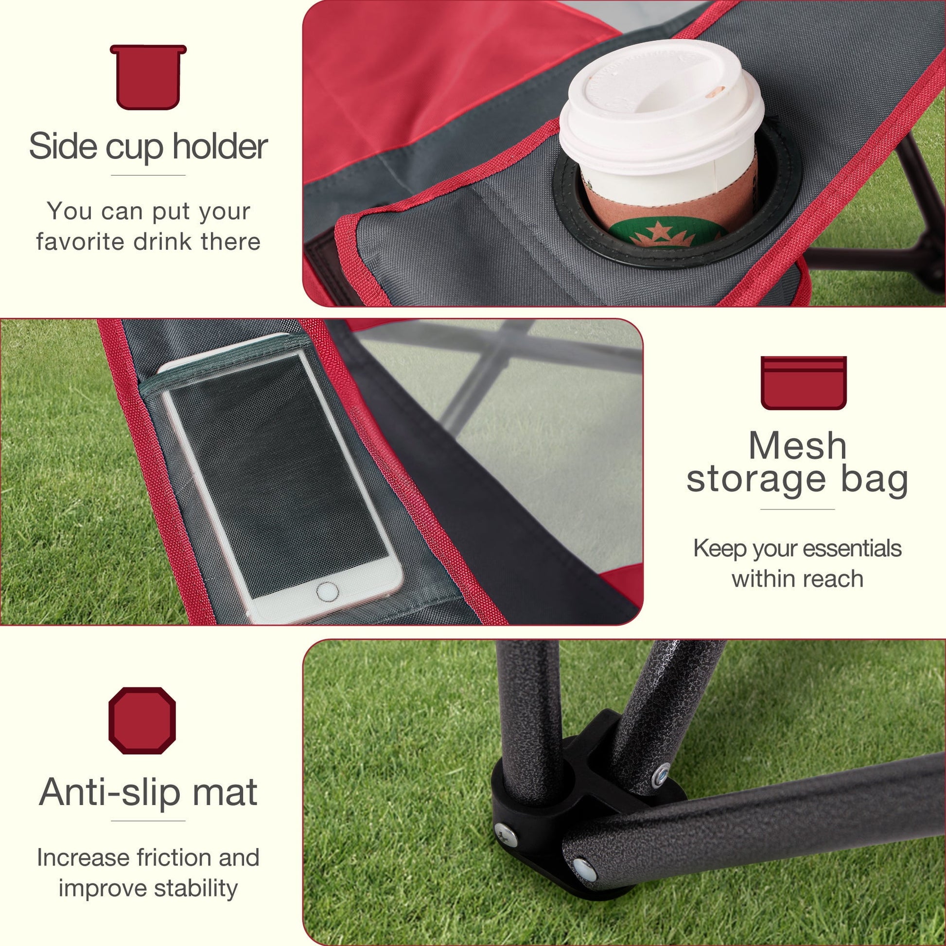 Enjoy ultimate outdoor comfort with the Alpha Joy Folding Canopy Chair, featuring an adjustable sun shade that provides instant UV protection wherever you go. Built with a heavy-duty steel frame supporting up to 300 lbs, this durable chair combines strength with convenience through its foldable design and included carry bag - perfect for beaches, camping trips, or backyard relaxation. The dual cup holders keep drinks within easy reach while the breathable 600D polyester fabric ensures lasting comfort. Lightweight yet sturdy, this rust-resistant chair folds compactly for effortless transport to any outdoor adventure, from fishing trips to sports events. Experience shaded comfort anywhere with this all-terrain canopy chair that makes outdoor living effortless and enjoyable.