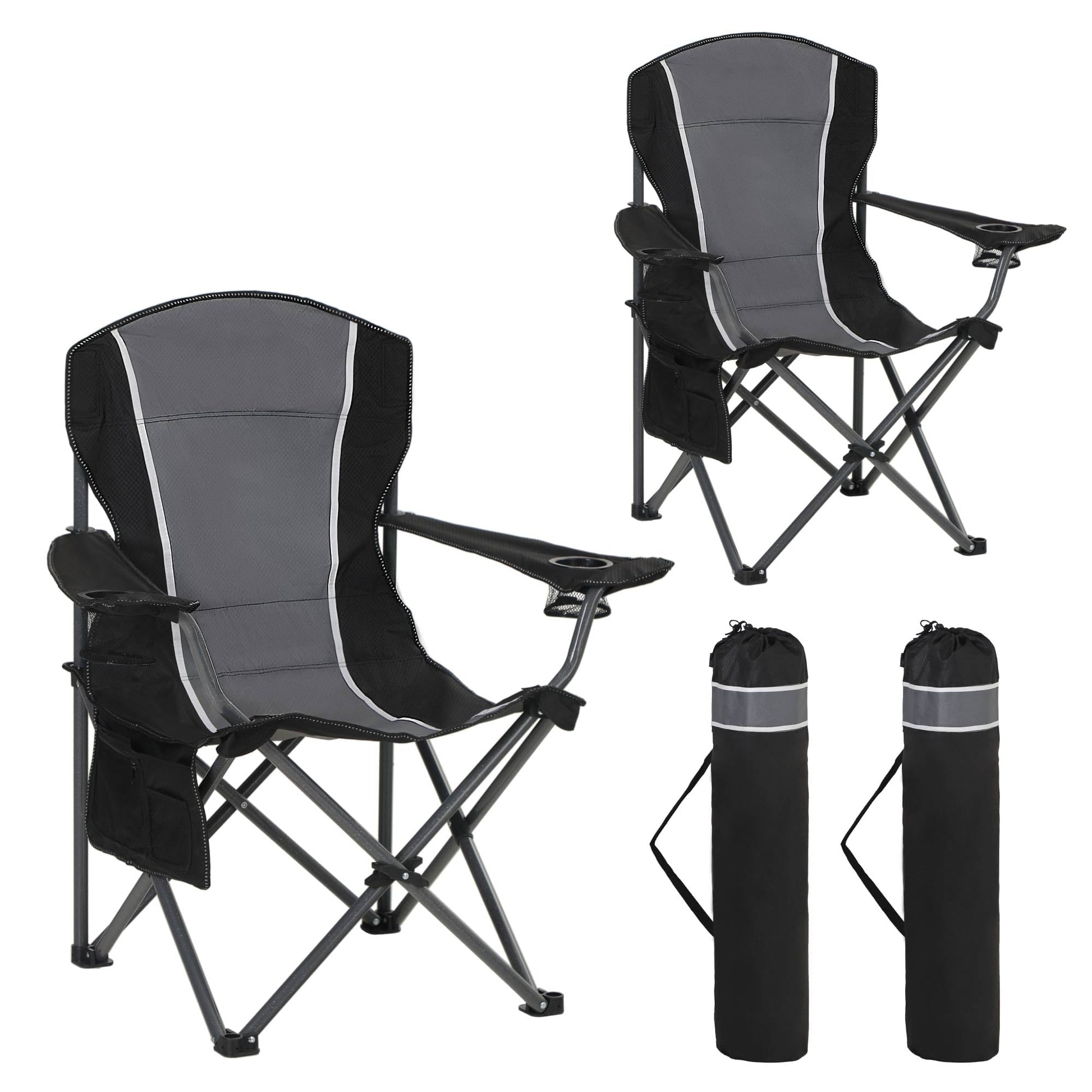 This spacious folding chair combines durability with convenience, perfect for camping, fishing, beach trips, or relaxing in the backyard. The sturdy steel frame supports up to 350 lbs, while the breathable mesh design keeps you comfortable during extended use. Thoughtful features include dual cup holders and a side pocket for easy access to drinks and essentials. The quick-fold design allows for compact storage, and the included carry bag makes transportation effortless. Whether you're unwinding by the fire or enjoying a sporting event, this heavy-duty chair delivers reliable comfort wherever your adventures take you.