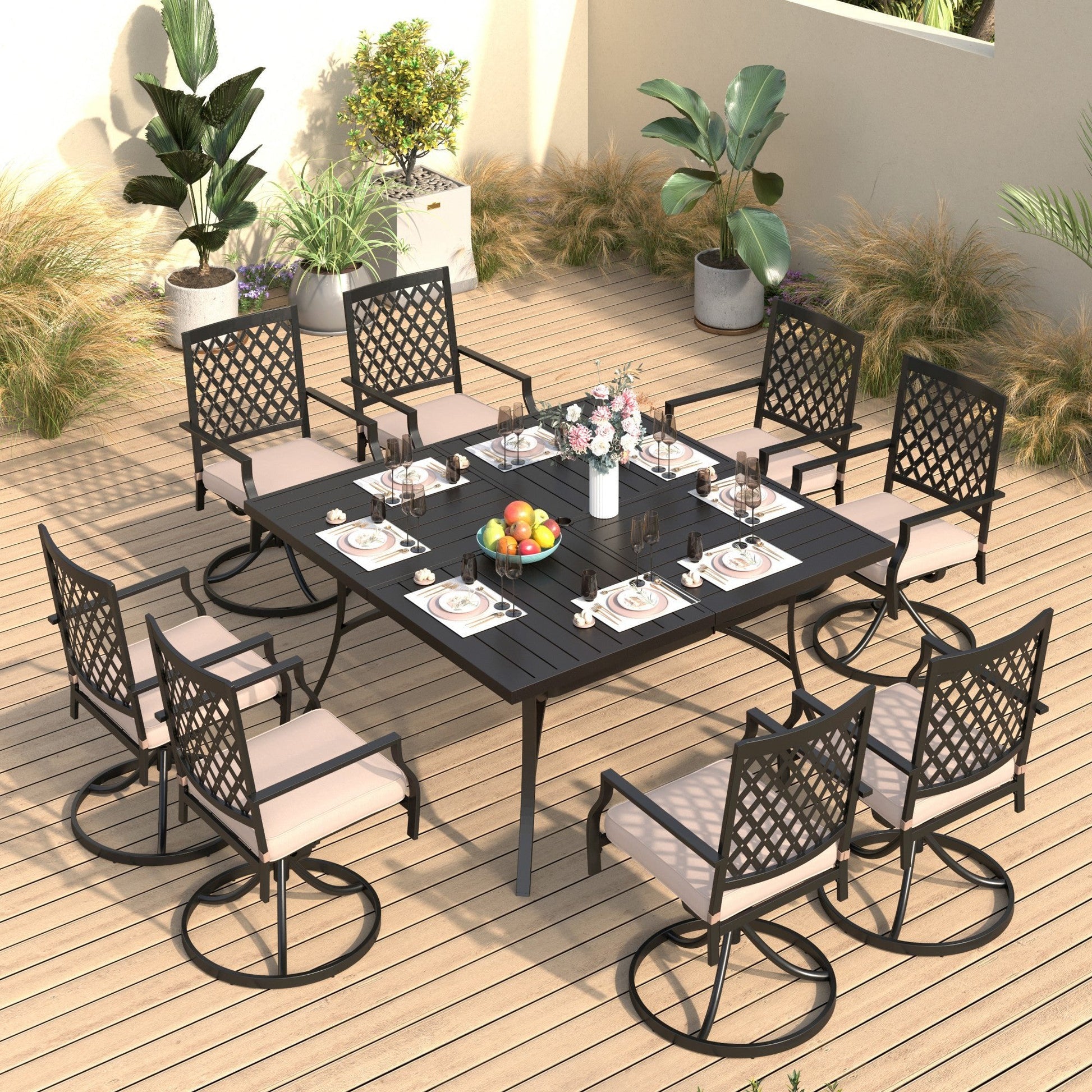 Sophia & William 9 Piece Outdoor Metal Patio Dining Set 60" Square Table and Cushioned Swivel Chairs Furniture Set