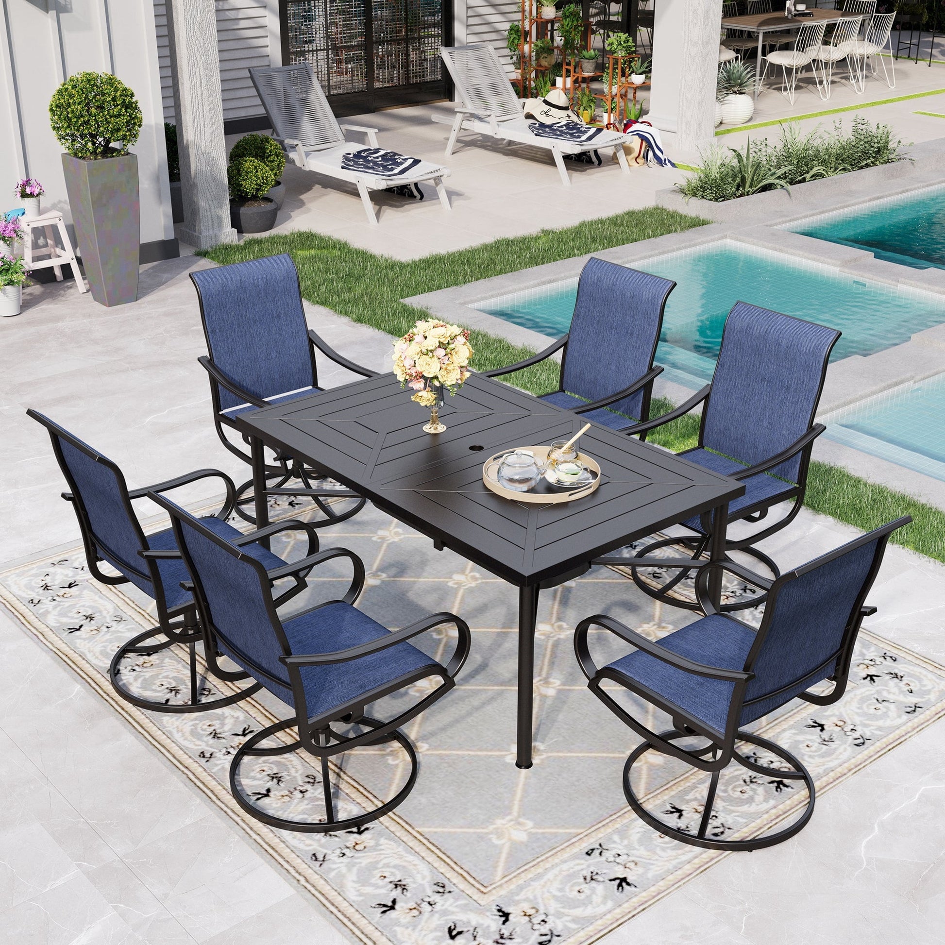 Sophia & William 7 Piece Outdoor Patio Dining Set Textilene Chairs and Table Furniture Set