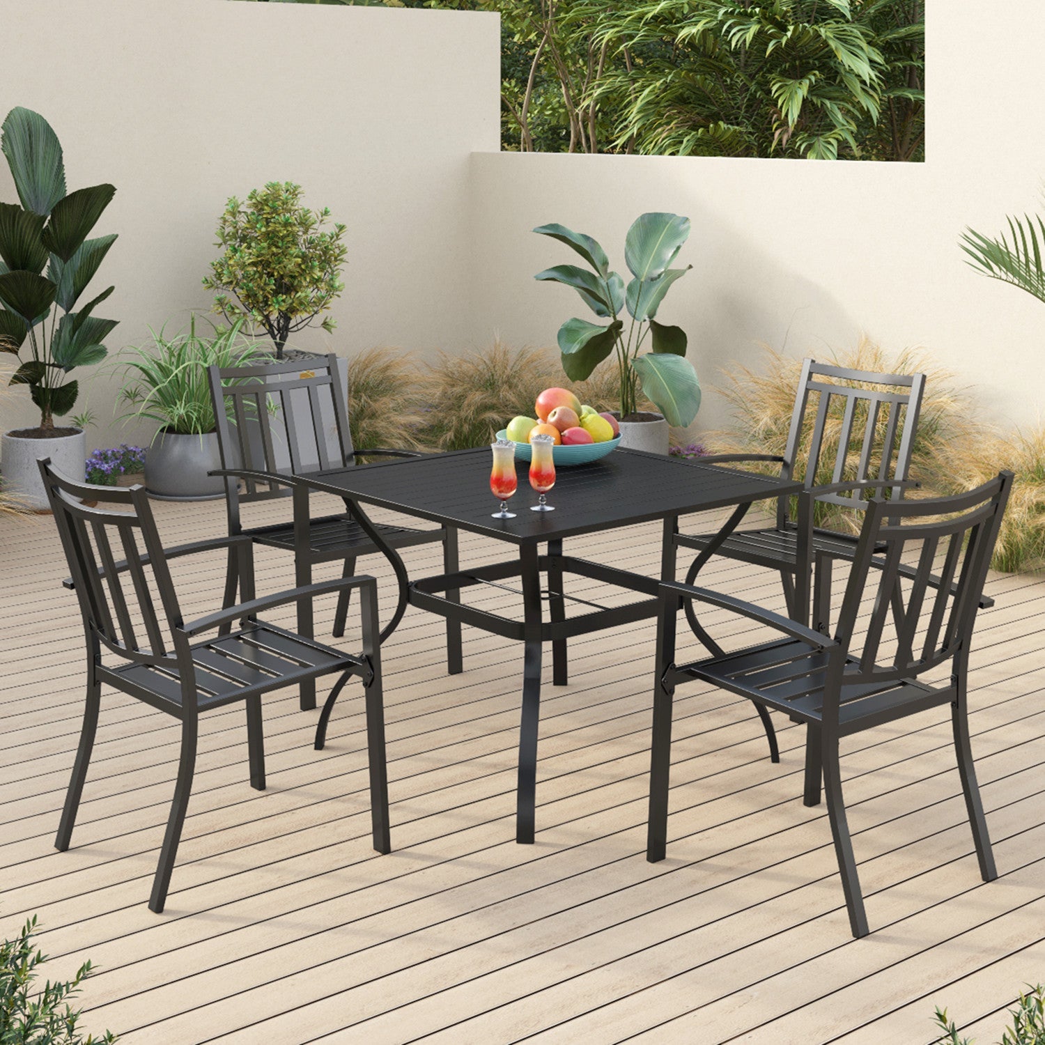 Sophia & William outdoor table and chair set, including 1 metal square table and 4 patio chairs, made of high-quality metal frame, with anti-rust and weather resistance electronic coating to ensure longer service life, easy Clean without special maintenance.
