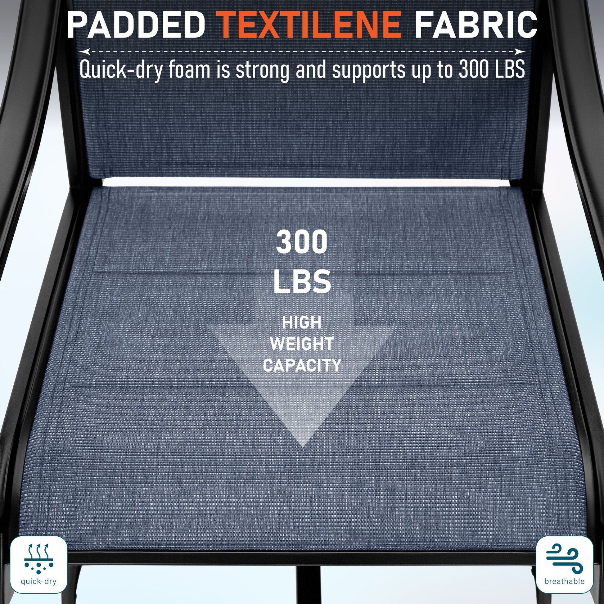 - 【Breathable Sling Fabric】The surface of chairs are designed with quick drying sling fabric. Foam-padded design is more soft and comfortable. The stuffing will not hinder the air permeability of the chair, it's also weather resistant, rainproof, UV-resistant, and easy to clean; so it is the best choice for outdoor use in summer.