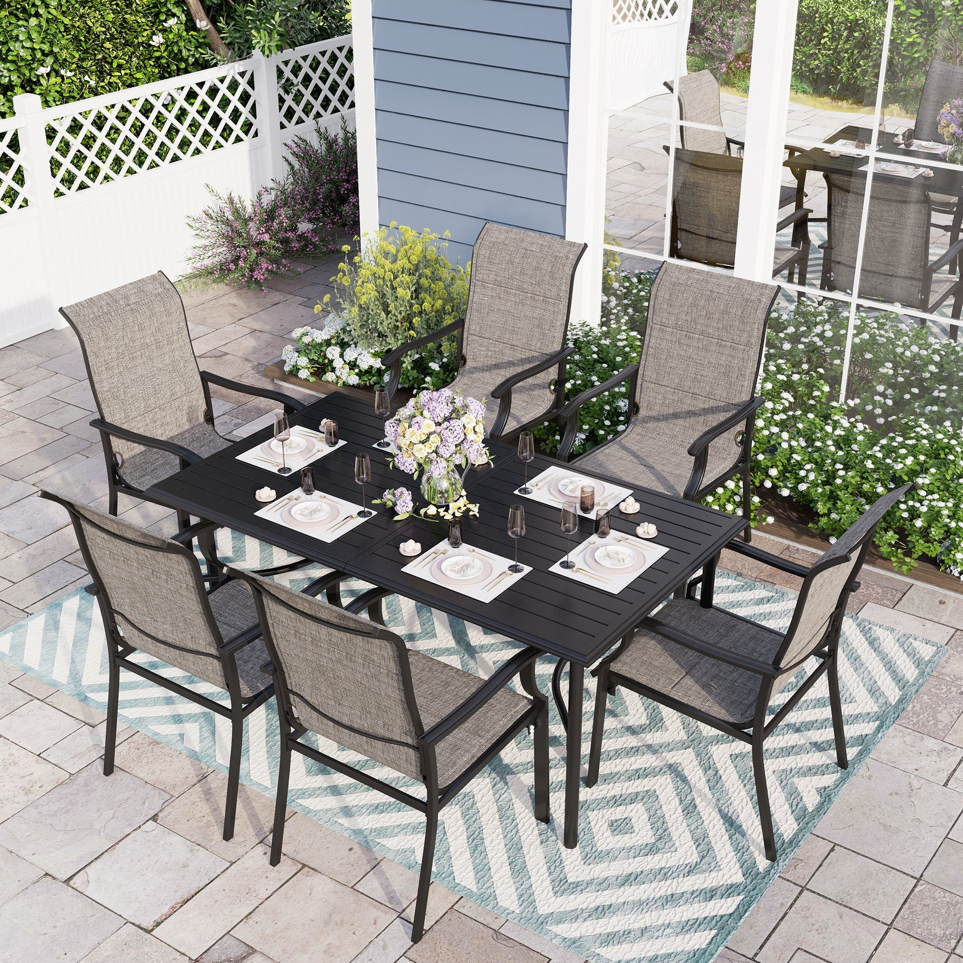Sophia & William 7 Piece Outdoor Patio Dining Set Metal Table with Highback Textilene Chairs