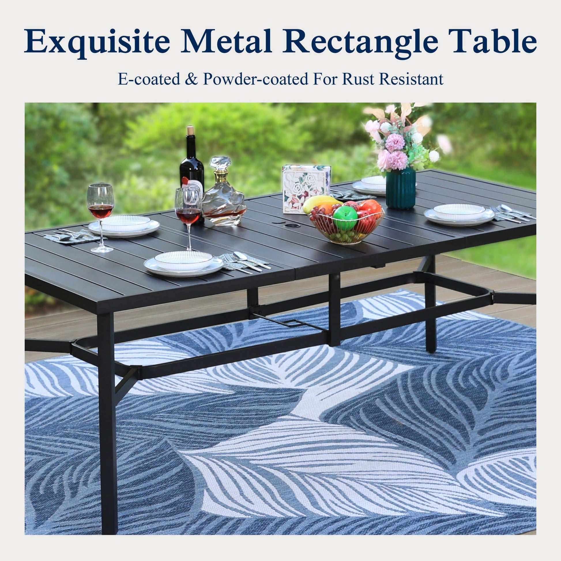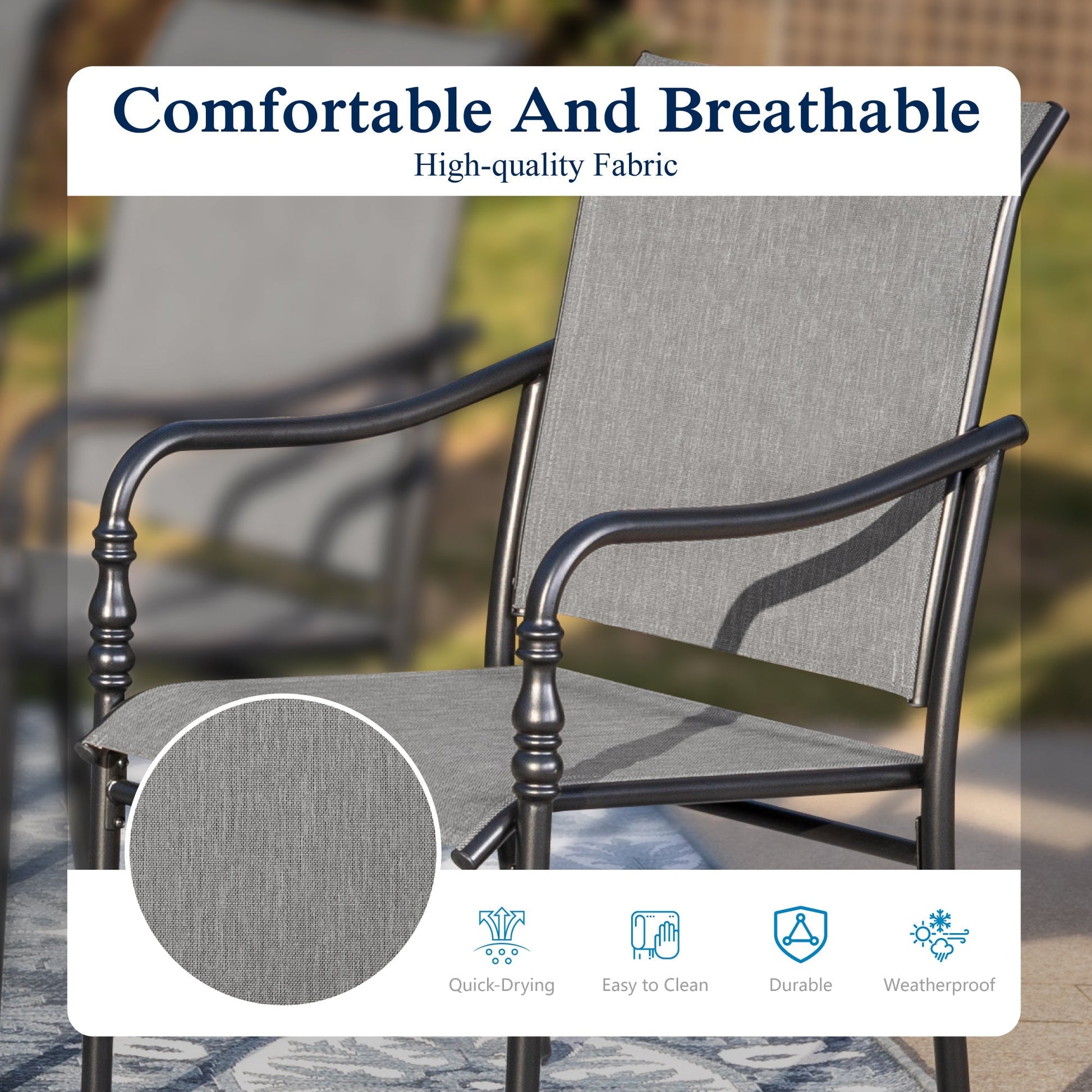 Our Sophia & William Patio Dining Set is the perfect match for your outdoor Garden, Poolside, Balcony and any other outdoor area. We select steel frame and covered with E-coating & Powder coating on the surface, designed to be rust-resistant and long-lasting, to ensure that your conversation set can last for many years. Premium textilene fabric is soft and breathable, providing the perfect balance between hard and soft surfaces for optimal comfort. When you sit on it, it will eliminate the fatigue of your day. Don't hesitate, take this perfect patio dining set to your family!