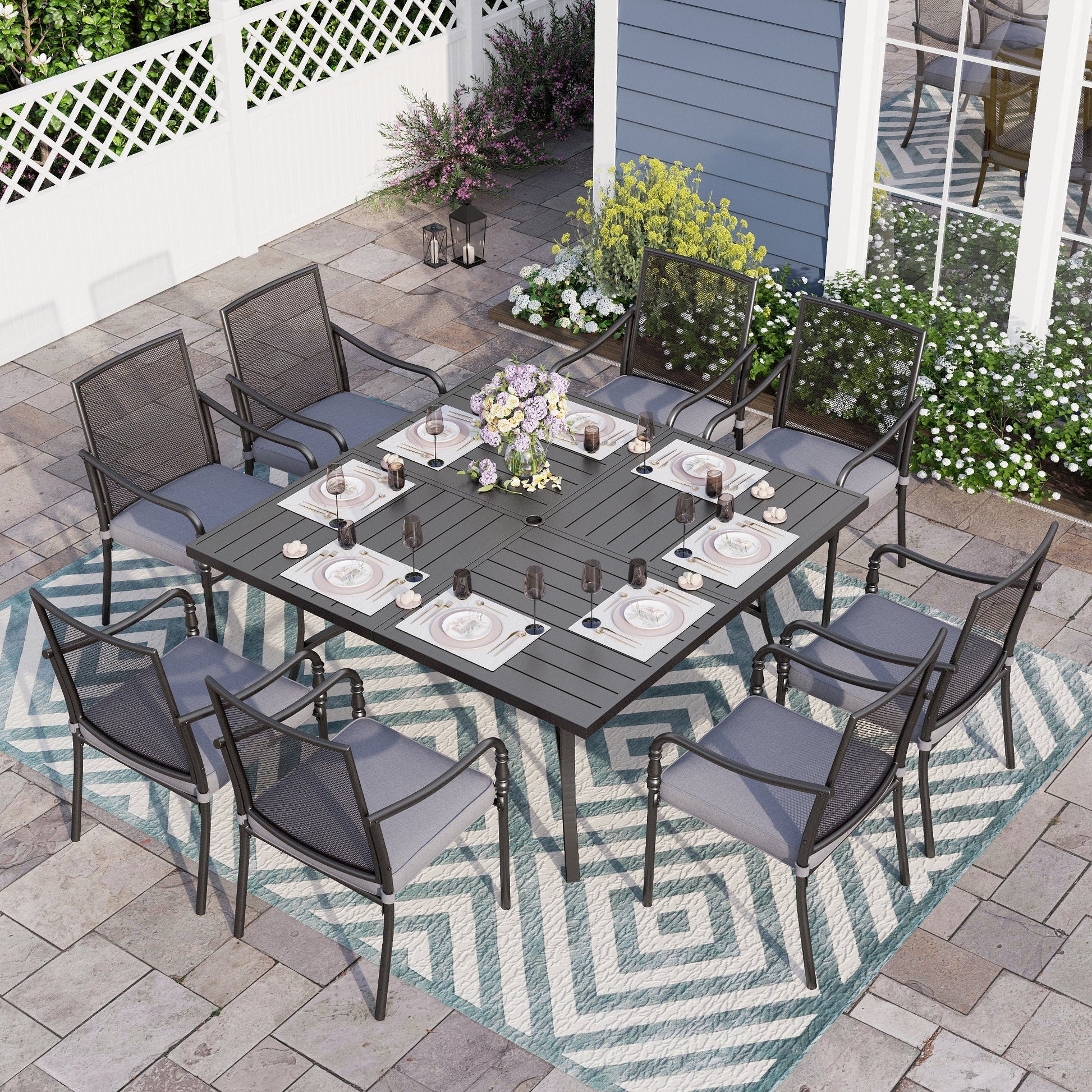 Alpha Joy 9 Piece Patio Metal Dining Set 60" Square Table and 8 Stackable Metal Patio Dining Chairs