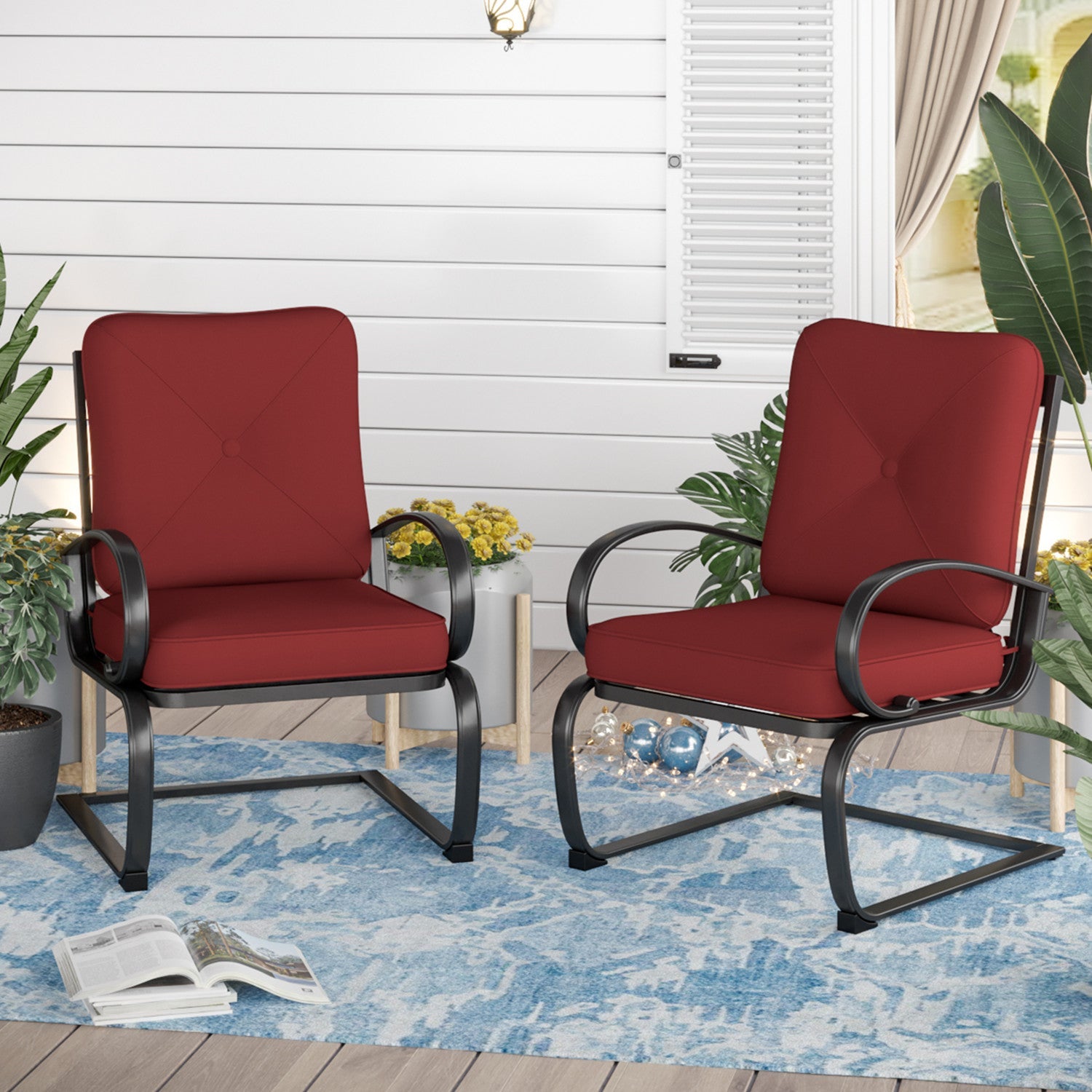 Sophia & William 2-Piece Patio C-Spring Dining Chairs Steel Frame with Red Cushion