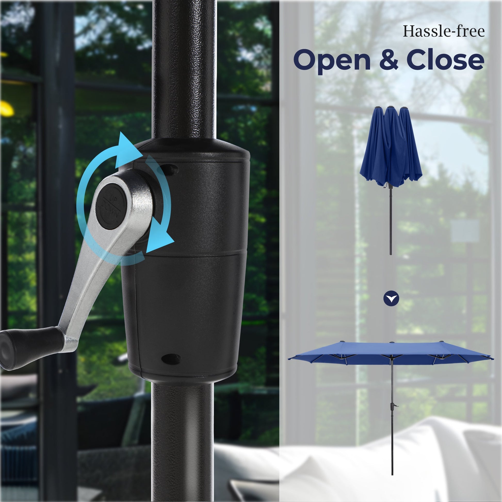 ¡¾Easy Crank Handle¡¿Say goodbye to complicated setups! Our patio umbrella features a convenient crank handle mechanism, allowing you to effortlessly open and close the umbrella with minimal effort. This user-friendly design ensures quick and hassle-free operation, so you can spend more time relaxing outdoors.