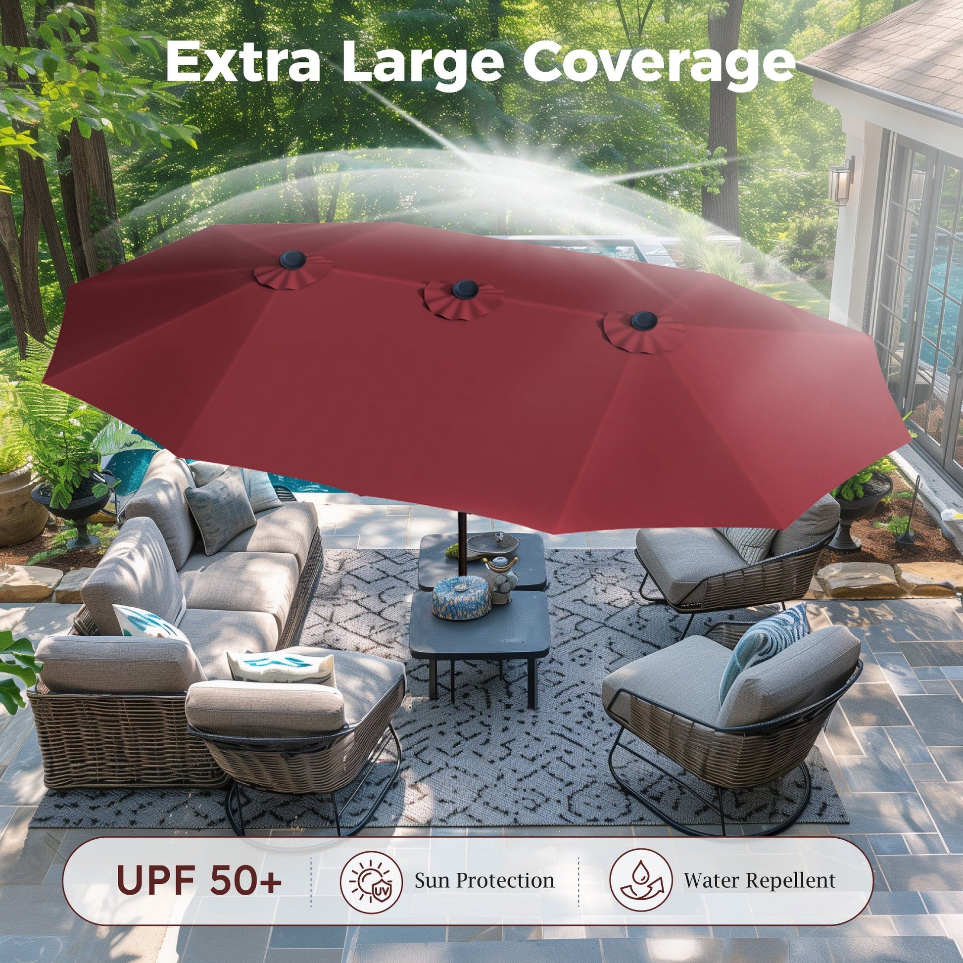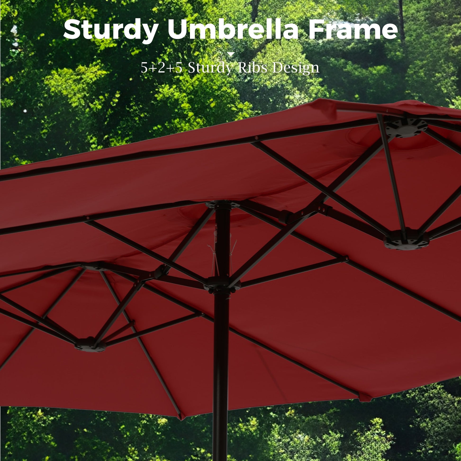 Alpha Joy 15ft Outdoor Patio Umbrella Extra-Large Double-Sided Garden Umbrella with Crank Handle and Base - Burgundy