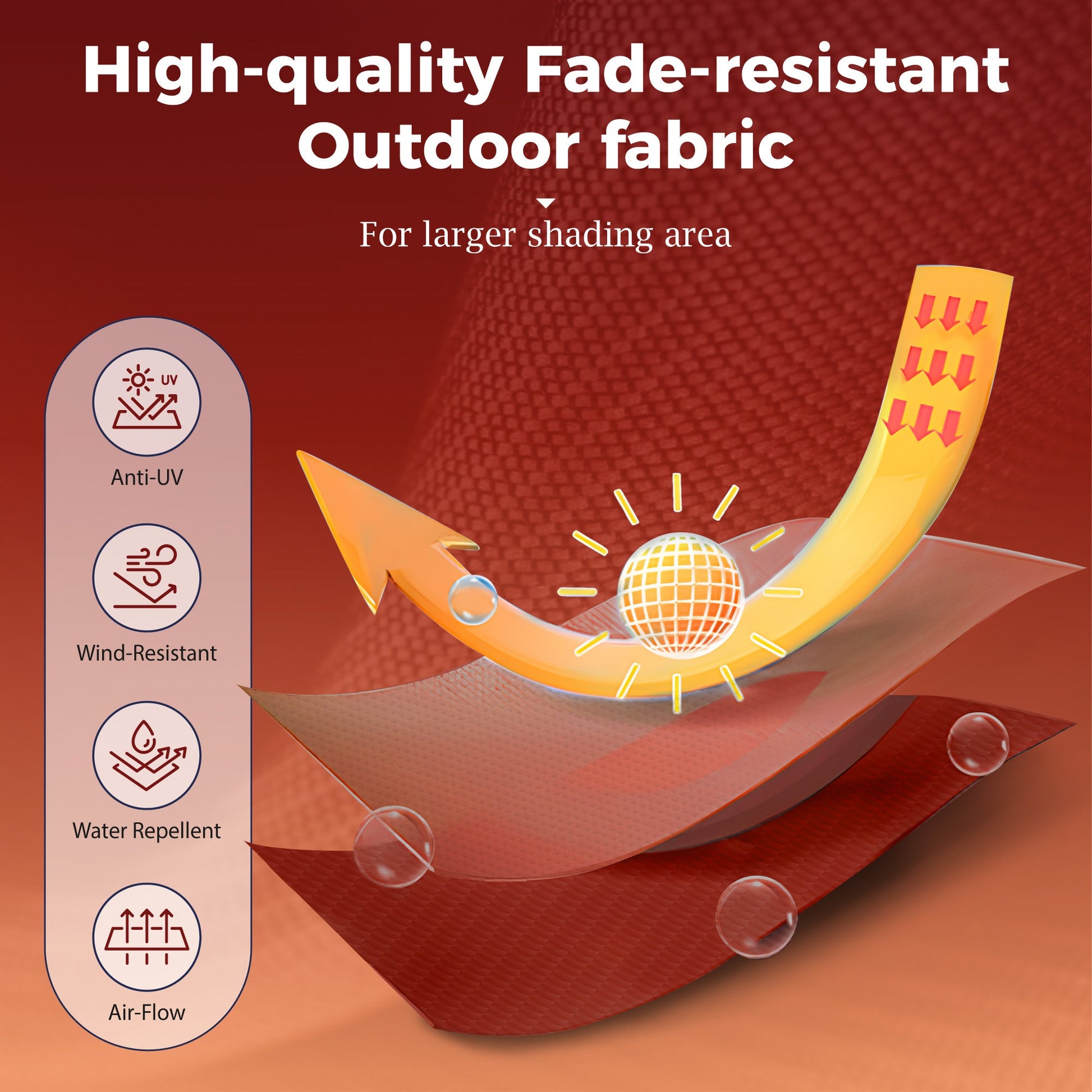 ¡¾Durable Polyester Fabric¡¿: The umbrella canopy is made of high-quality polyester fabric, which is UV-resistant, fade-resistant, and water-repellent, ensuring long-lasting performance and protection.