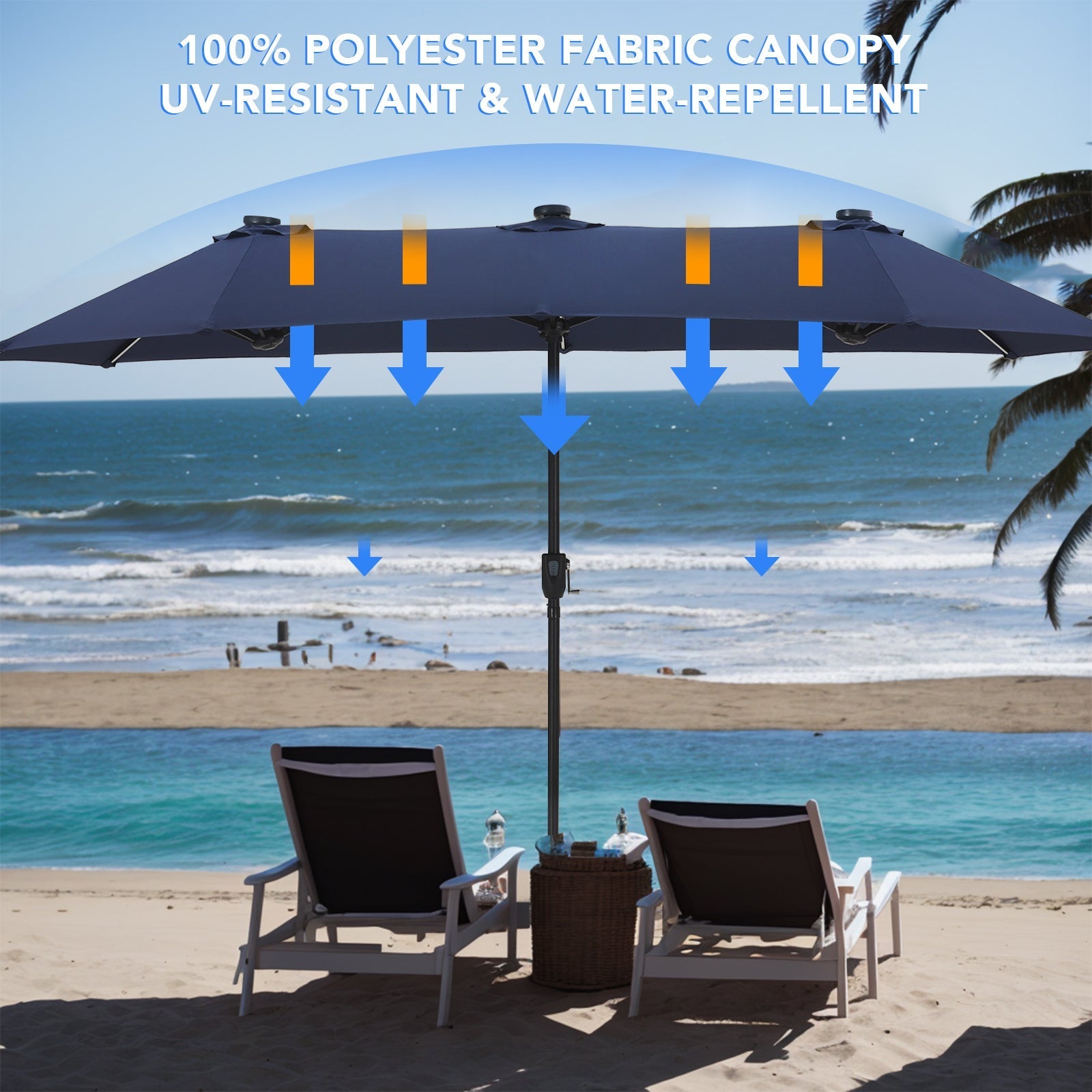¡¾Extra Large Umbrella¡¿With our 15ft extra large umbrella, you’ll have plenty of space to relax comfortably and protect yourself from the sun’s harmful UV rays.