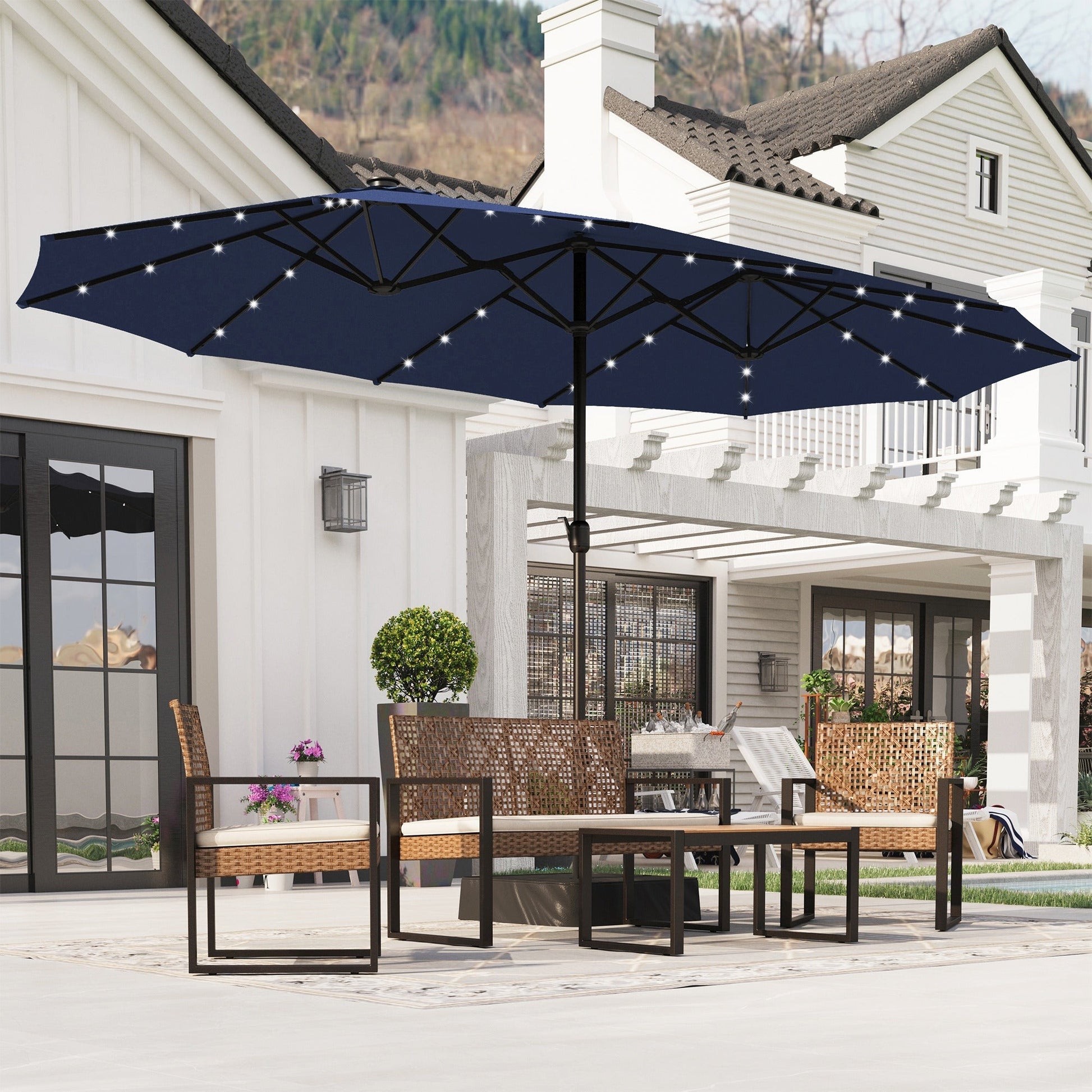 15FT Outdoor Patio Umbrella Extra Large Double-Sided Garden Umbrella with Crank Handle, Navy Blue