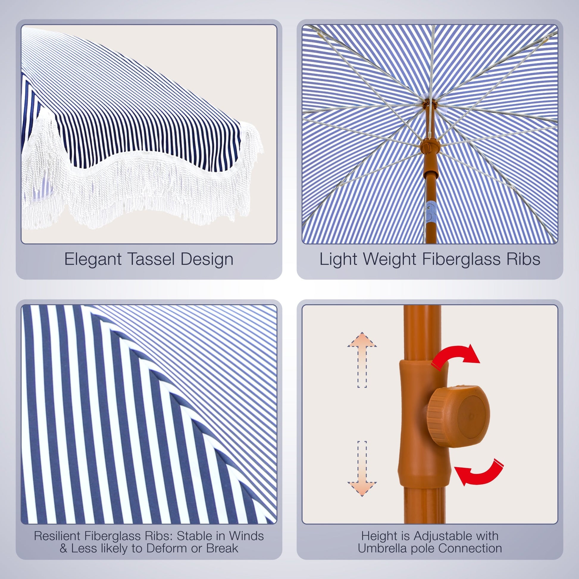 Sophia & William 7FT Outdoor Parasol Umbrella Fiberglass Ribs Umbrella with Tassel, Navy Blue Strips