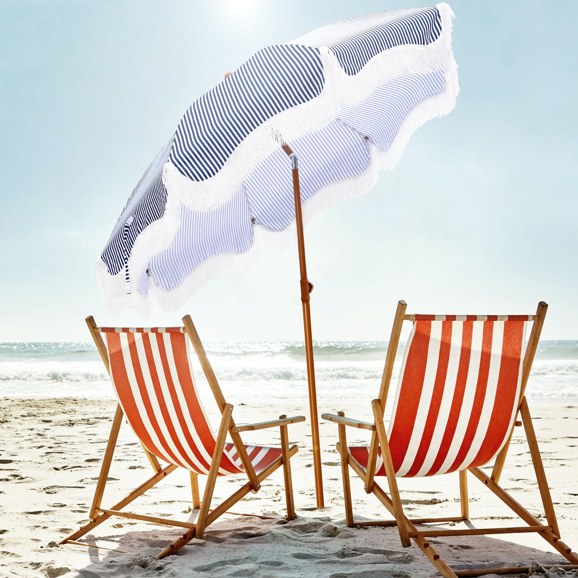 Alpha Joy 7FT Outdoor Parasol Umbrella Fiberglass Ribs Umbrella with Tassel, Navy Blue Strips
