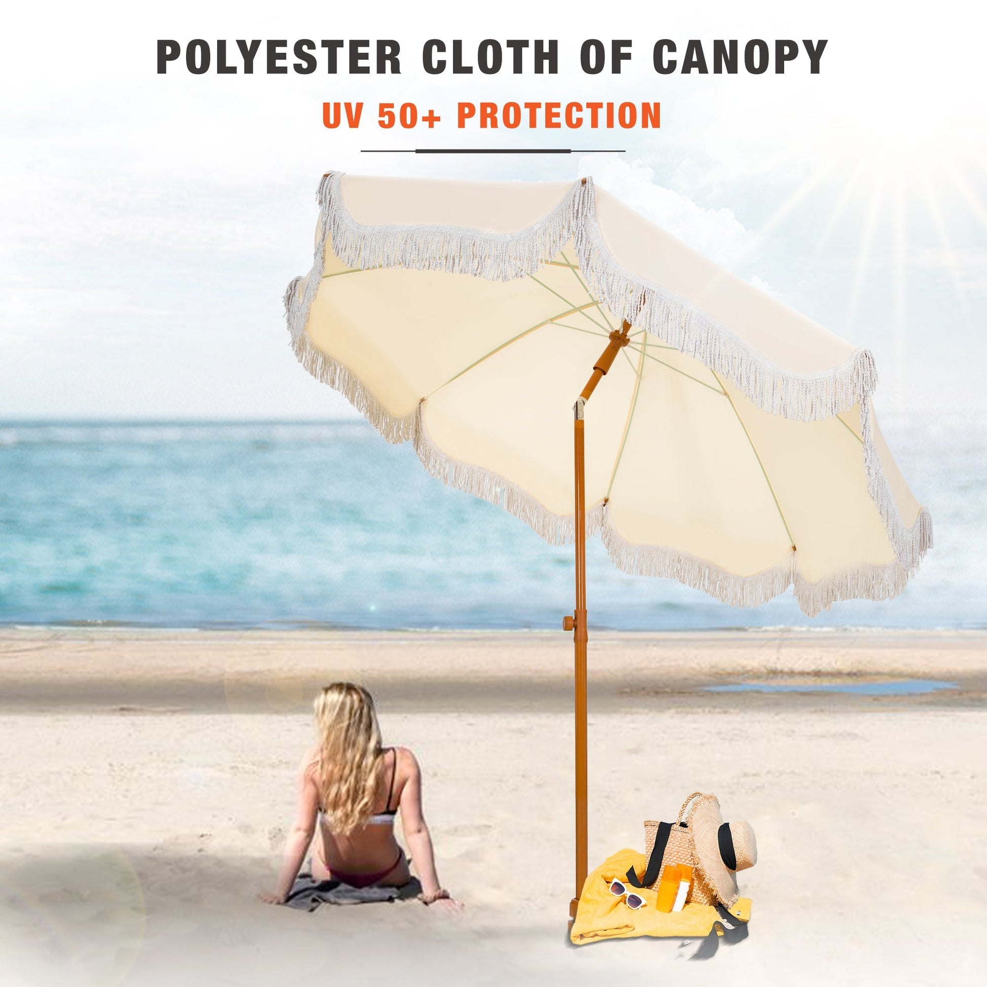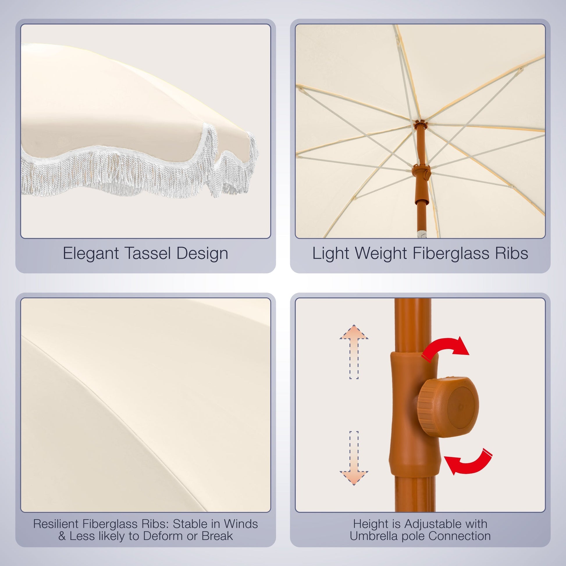 Alpha Joy 7FT Outdoor Parasol Beach Umbrella Fiberglass Ribs Umbrella with Tassel, Ivory