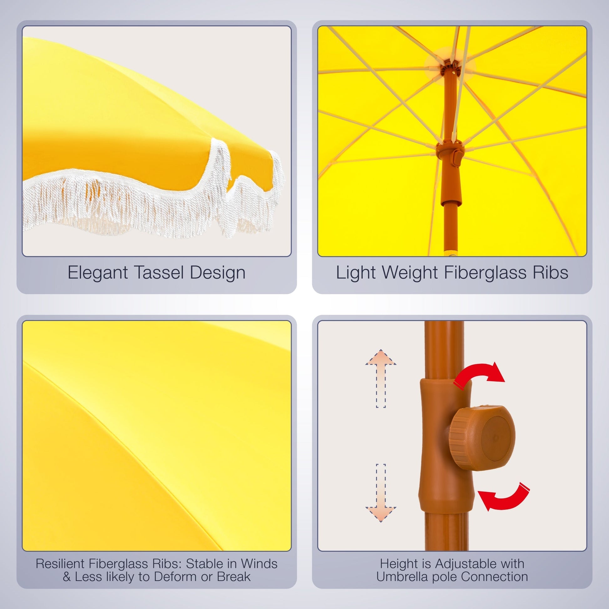 Sophia & William 7FT Outdoor Parasol Umbrella Fiberglass Ribs Umbrella with Tassel, Yellow