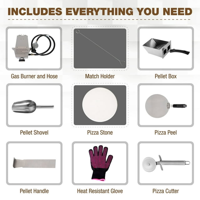 【Multi-Fuel Functionality】- Equipped with a pellet box and a gas burner, this pizza oven supports both wood-fired and gas cooking, allowing you to choose between the traditional smoky flavor of wood or the convenience of gas for your pizzas.