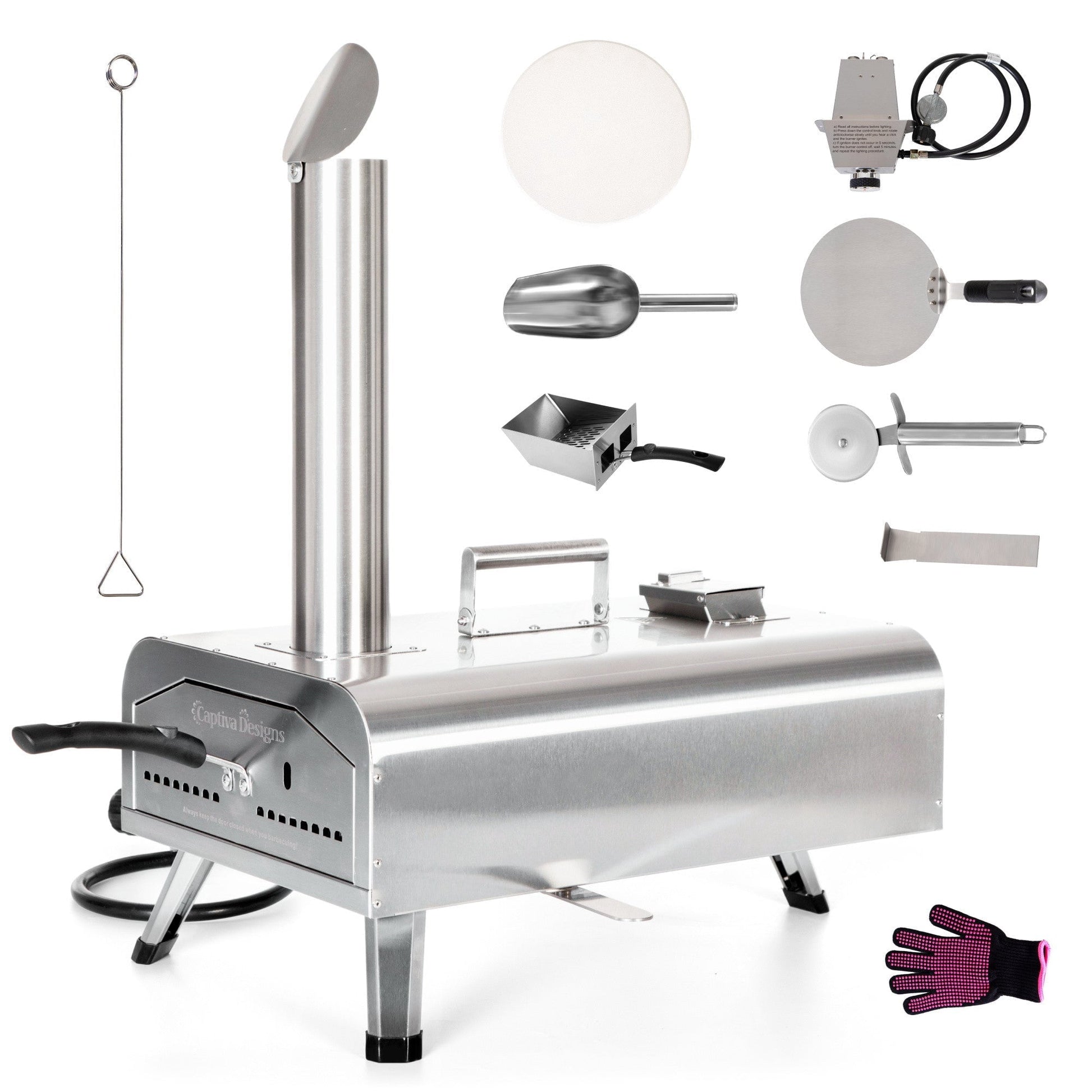 Kitchen Academy Outdoor Pizza Oven Wood Fired & Gas Oven with 12" Rotatable Pizza Stone