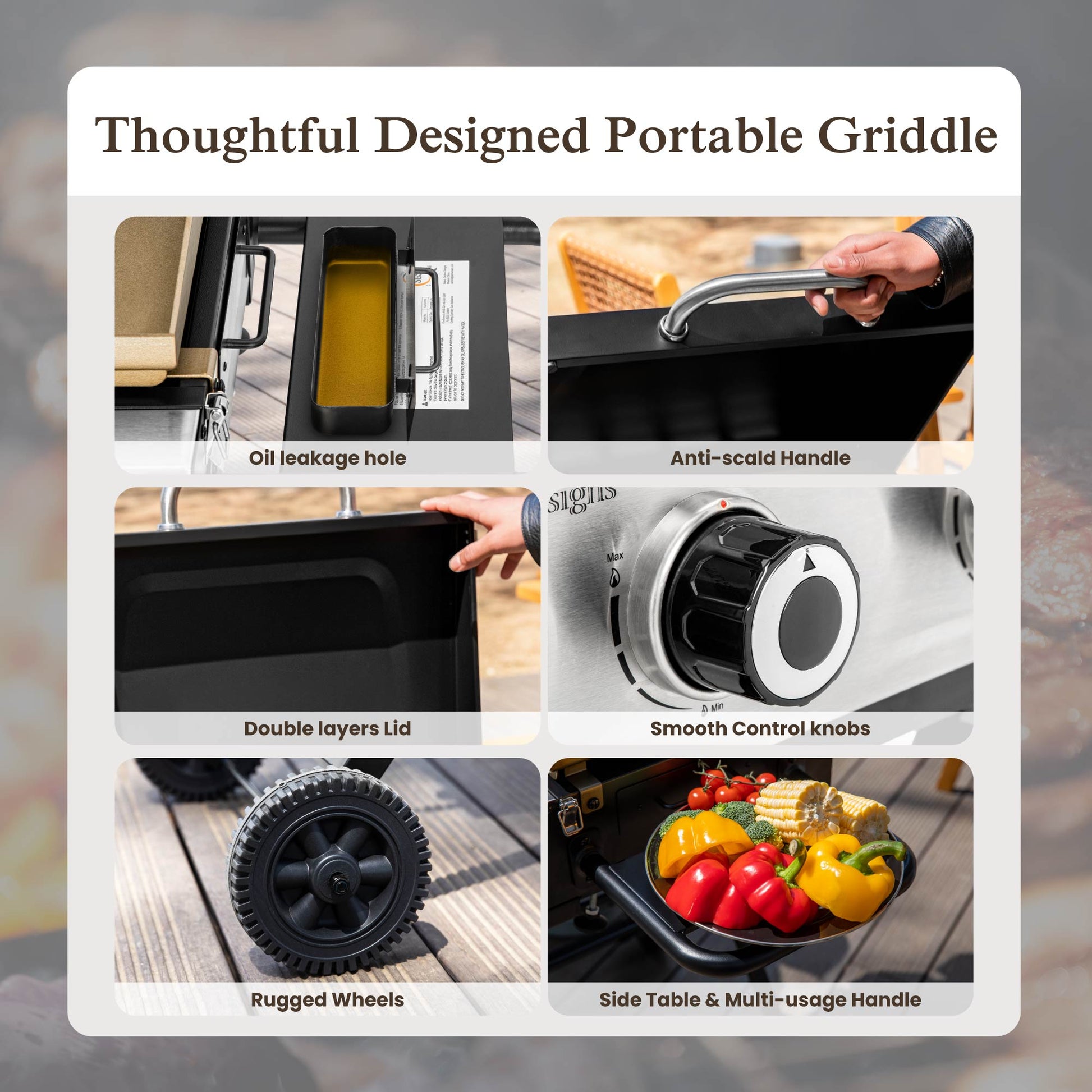 - Premium Non-Stick Cooking Surface: The griddle tops offer excellent heat conductivity and scratch-resistant performance. The oil grease coating ensures a non-stick finish and makes clean-up easier.
