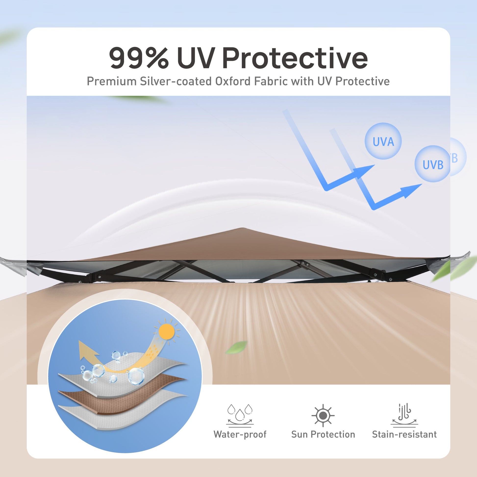• Durable & Weather Resistant: Made from 150D Oxford cloth with a silver PU coating, this canopy offers outstanding waterproof protection. With UPF 50+ sun protection, you can relax comfortably and stay safe from harmful UV rays. Plus, multiple drain holes keep your shelter dry even on rainy days.