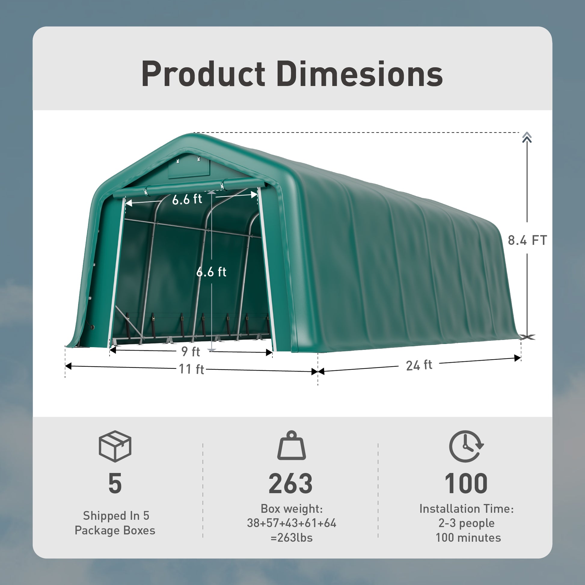 Alpha Joy Robust Pasture Shelter 11' x 24' Livestock Shelter Outdoor Storage Tent with Removable Side Walls