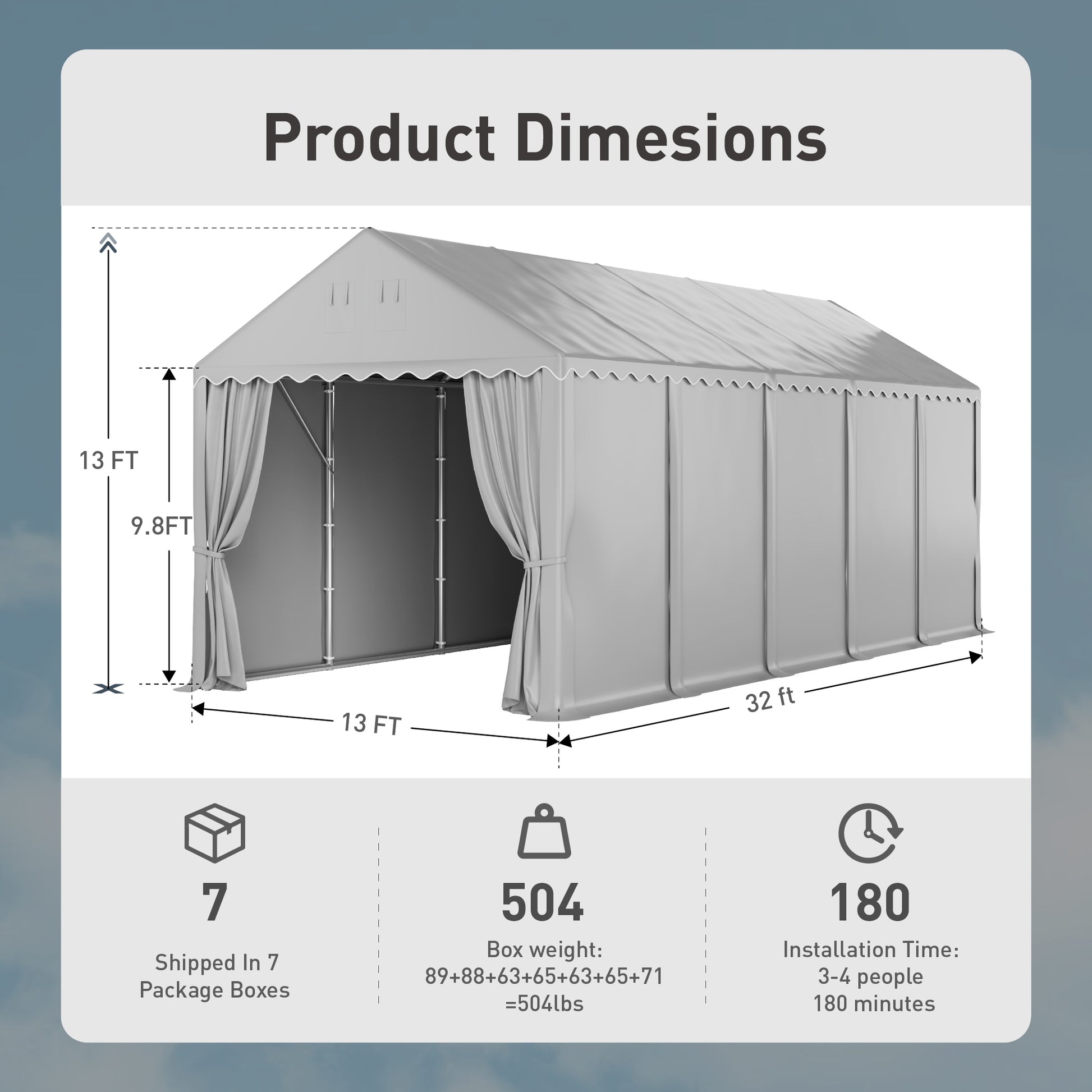 Alpha Joy Storage Shelter 13'x 32' Commercial Shelter Tent Outdoor Storage Tent Heavy Duty Carport with Removable Side Walls for Wedding, Courtyard and Parties