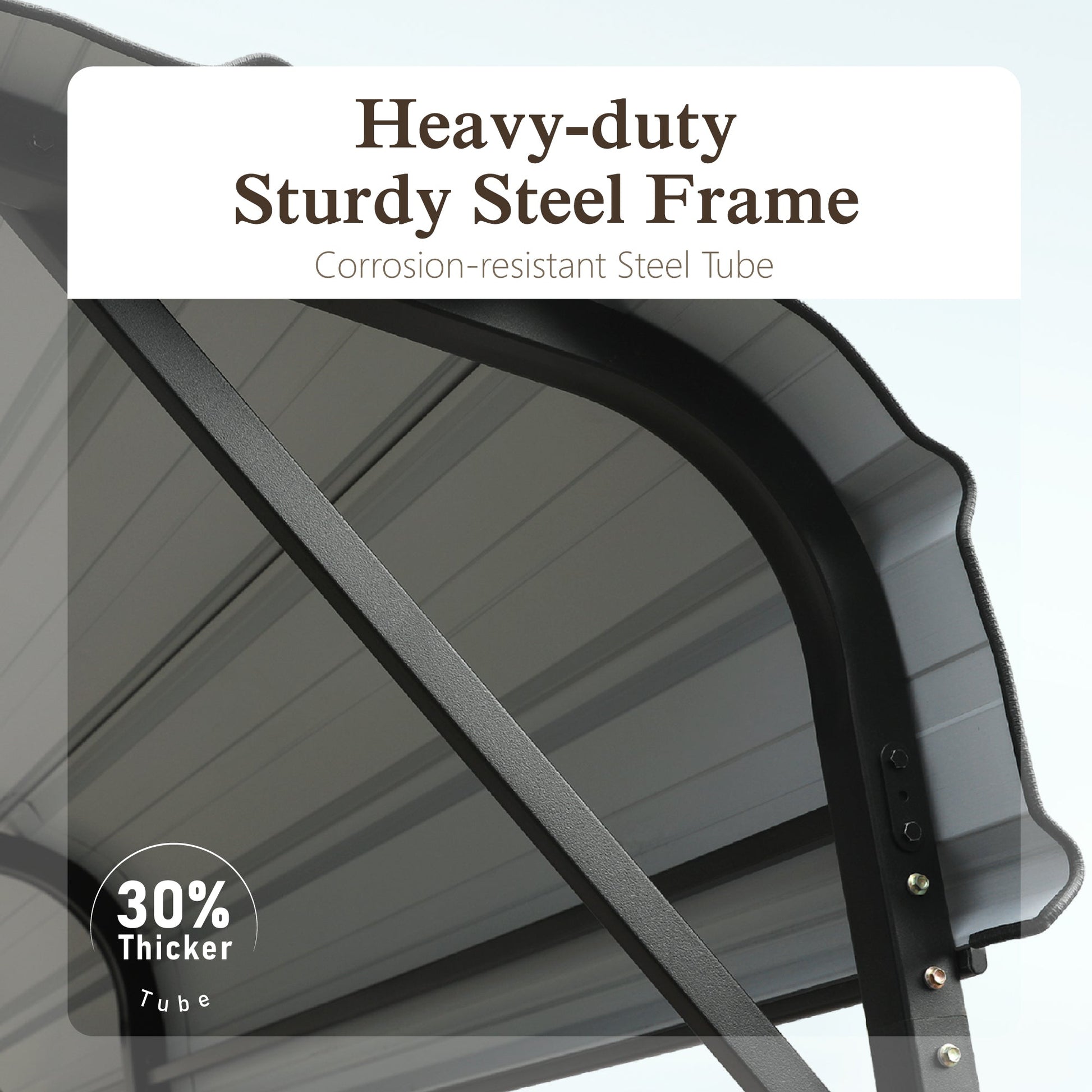 Our Heavy-Duty Outdoor Carport is a reliable shelter designed for all weather conditions, featuring a galvanized steel roof and a powder-coated steel frame. With a versatile design, it can accommodate vehicles, trucks, and boats, serving as a car shelter or event space. The carport's sturdy construction includes heavy-duty anchor rods for stability on various surfaces. It's equipped with upgraded weather sealant tape for leak prevention. Resistant to rust and corrosion, this carport offers long-lasting protection. Easy assembly with innovative screw-pipe framework design, and all necessary hardware and instructions are included.