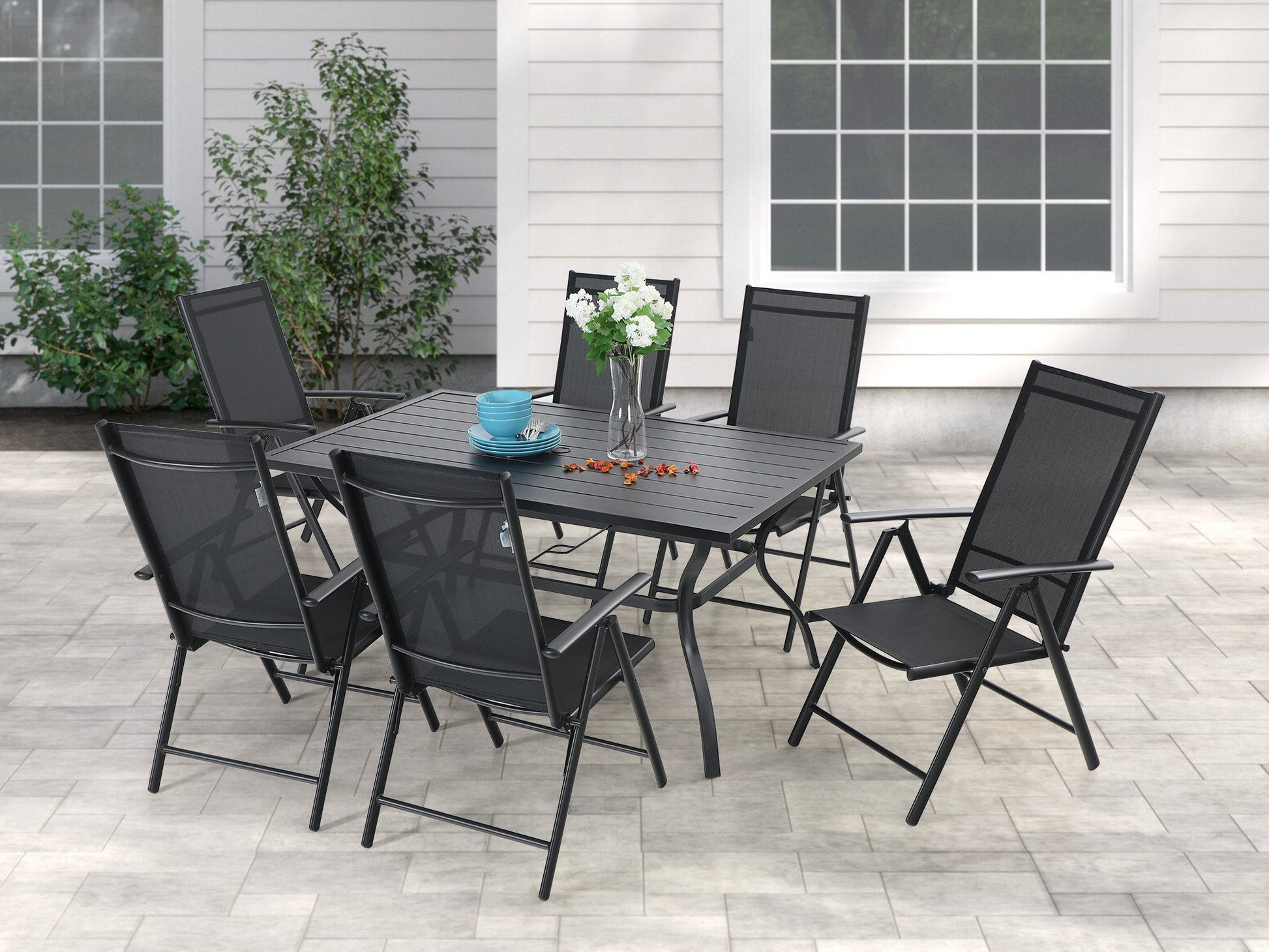 Sophia&William 7 Pcs Patio Dining Set Metal Table and Chairs Set for 6 People - Black